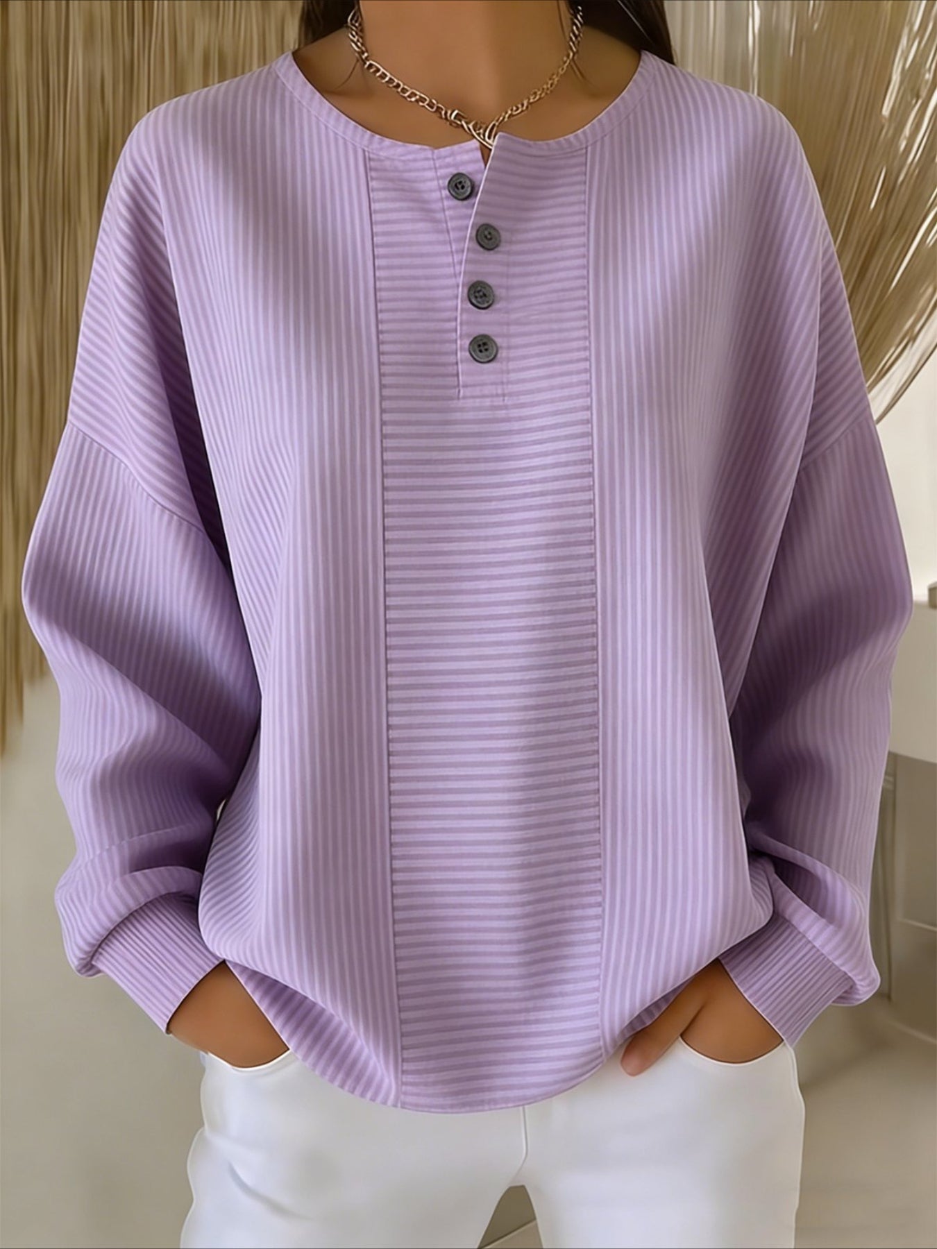 Colorful Ribbed V Neck Braided Print Long Sleeve Regular Sweatshirt