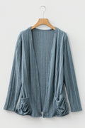 Stone Blue Ribbed Open Front Knitted Top with Pockets