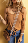 Straw Yellow Ribbed Front Knot Buttoned Thin Strap Tank Top