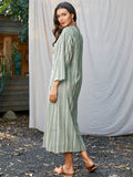 Sale Solid Color Single Breasted Simple Dress, Elegant Long Sleeve Maxi Loose Dress