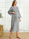 Sale Striped Print Long Sleeve Dress - Relaxed Casual Style with Notch Neck