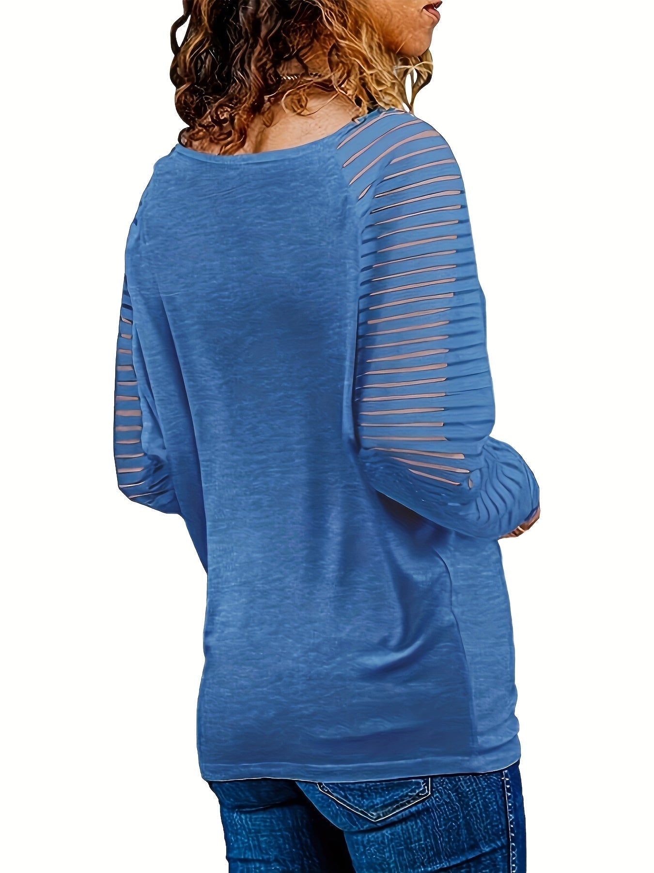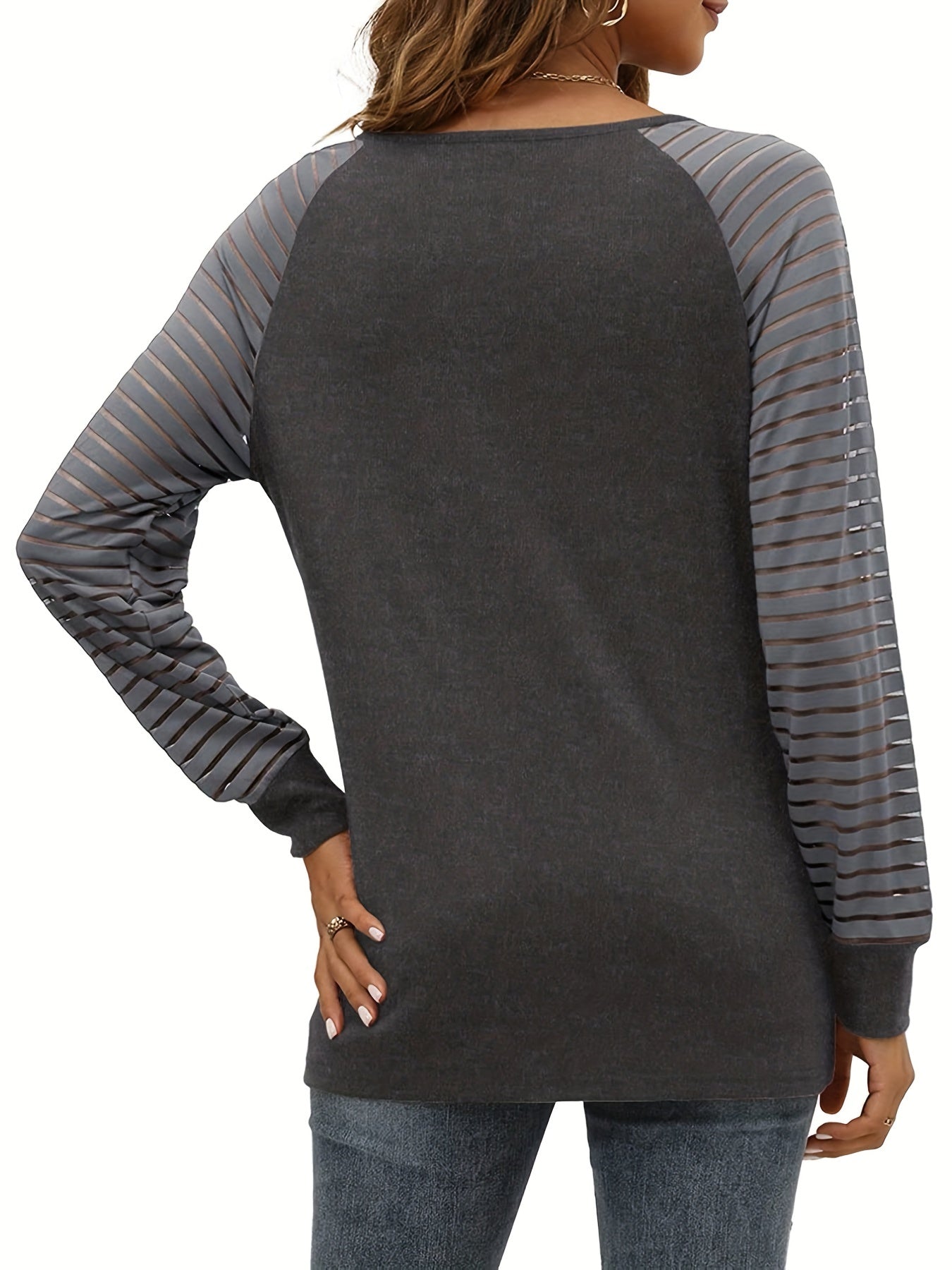 Sale Striped Botton Crew Neck T-Shirt, Elegant Long Sleeve T-Shirt