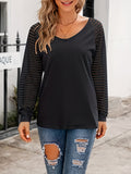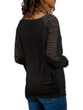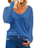 Sale Casual Contrast Lace Round Neck Long Sleeve T-Shirt