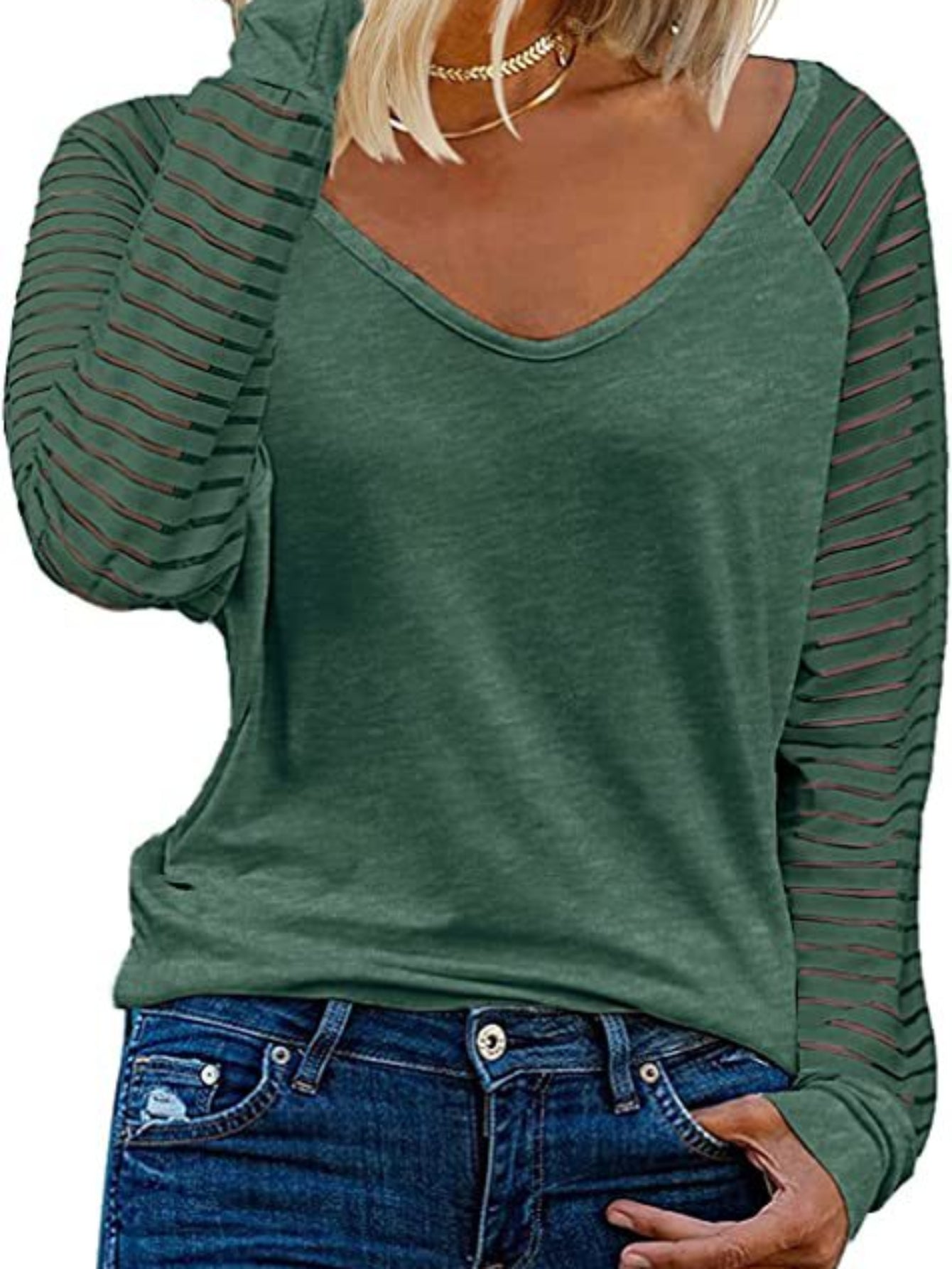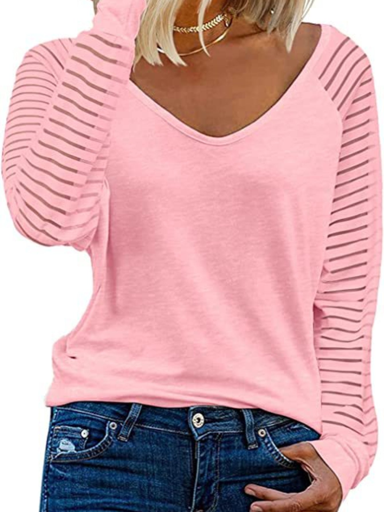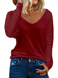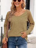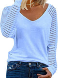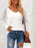 Sale Striped Print Long Sleeve T-Shirt, Casual V Neck T-Shirt