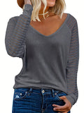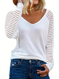 Striped Print Long Sleeve T-Shirt, Casual V Neck T-Shirt