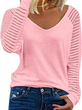 Sale Stylish Color Block V-Neck Long Sleeve T-Shirt with Zipper Detail