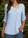 Sale V-Neck Button-Up Solid Color Short Sleeve Loose Fit Short Sleeve Shirt