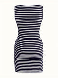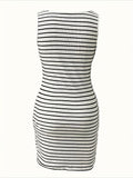 Striped Slim Fit V-Neck Sleeveless Button Detail Dresses