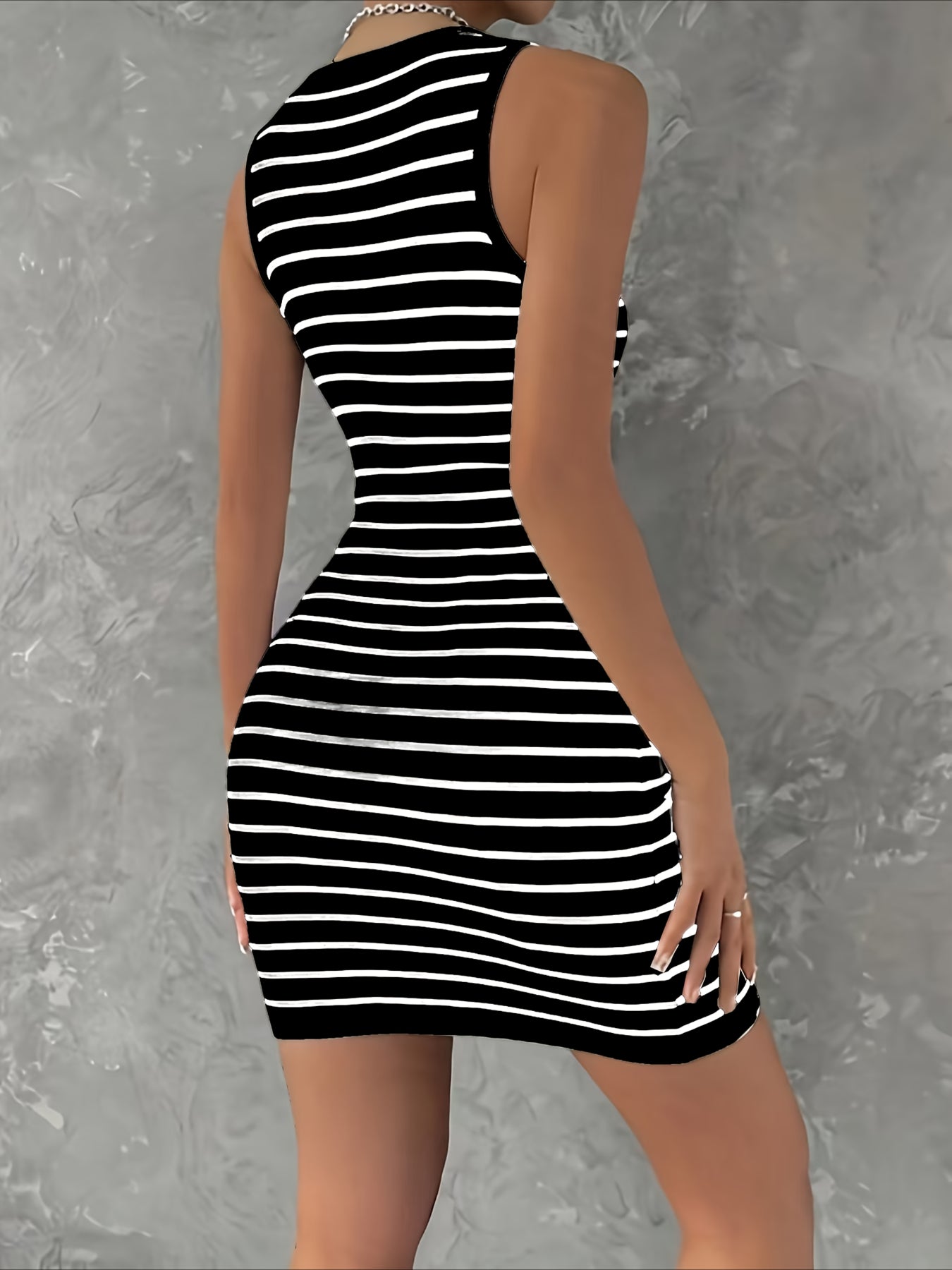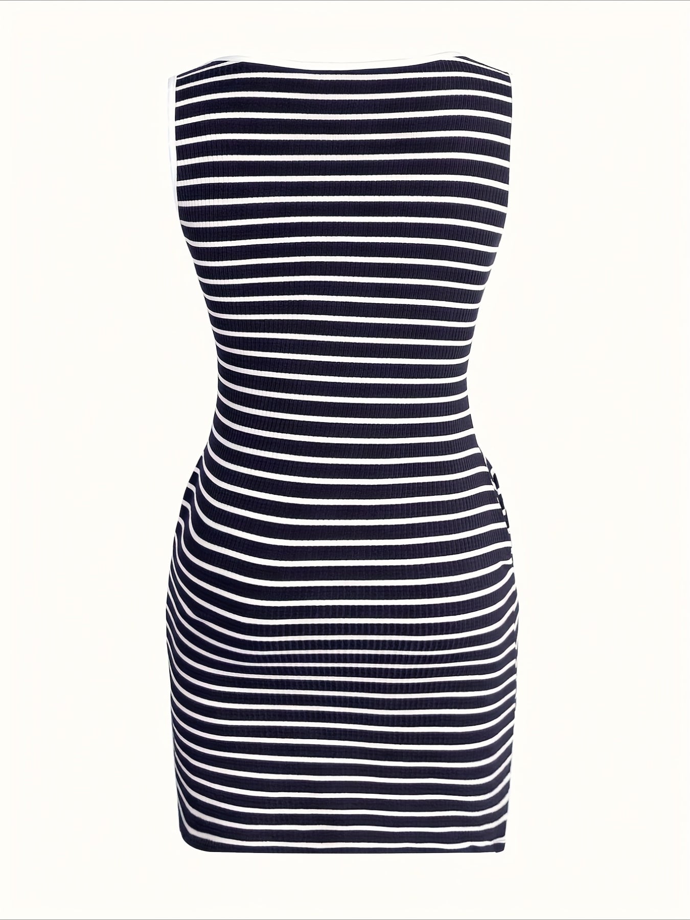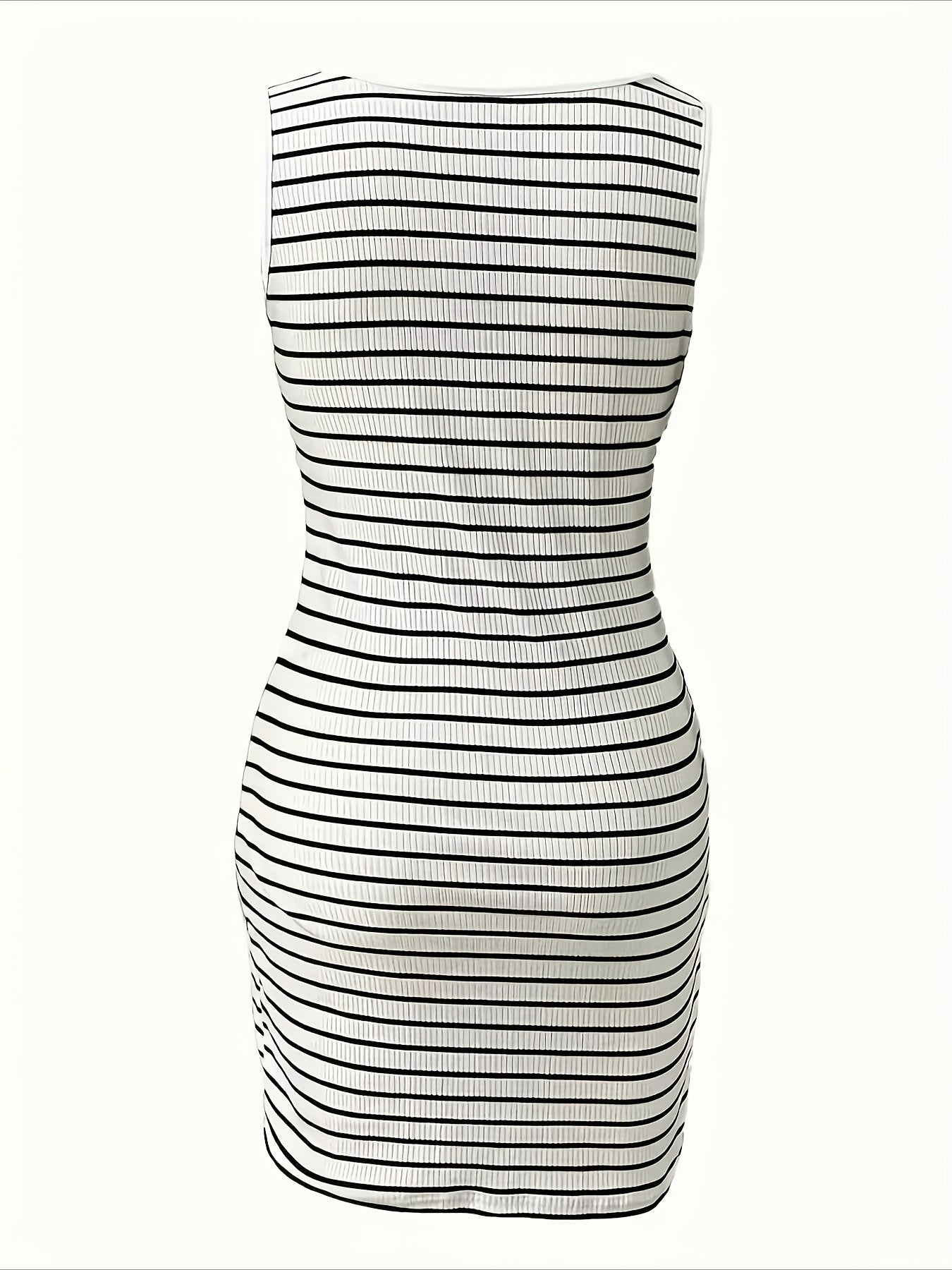 Sale Striped Slim Fit V-Neck Sleeveless Button Detail Dresses