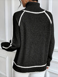 Stylish Contrast Trim Turtle Neck Sweater - Cozy Casual Long Sleeve Sweater