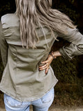 Sale Stylish Denim Safari Top, Button Up Ruched Trim Long Sleeve Collared Shirt, Casual Light Jacket Tops
