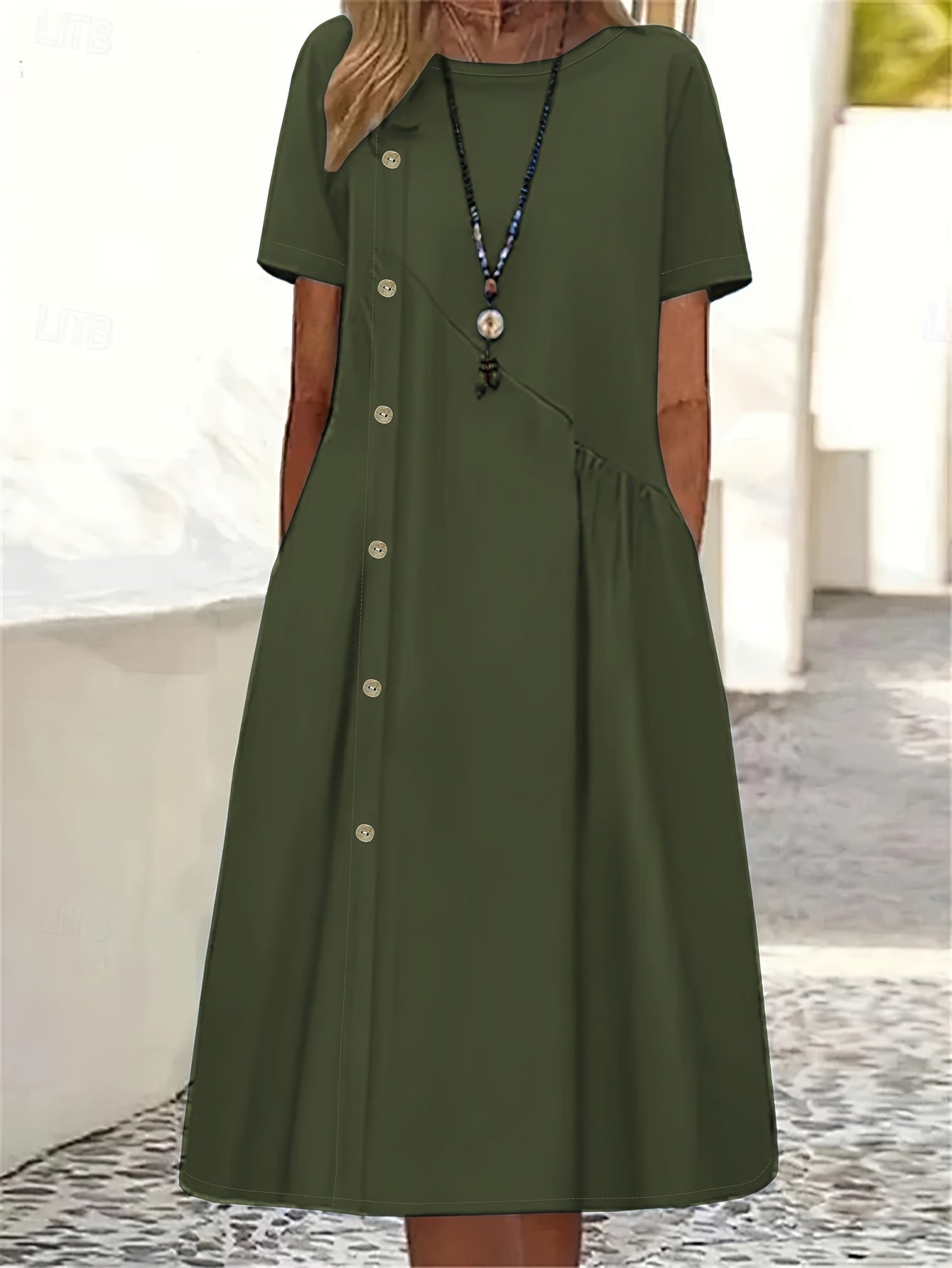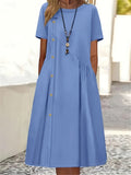 Polyester Women's Summer Dress | Light Blue Casual A-Line Mini with Decorative Buttons
