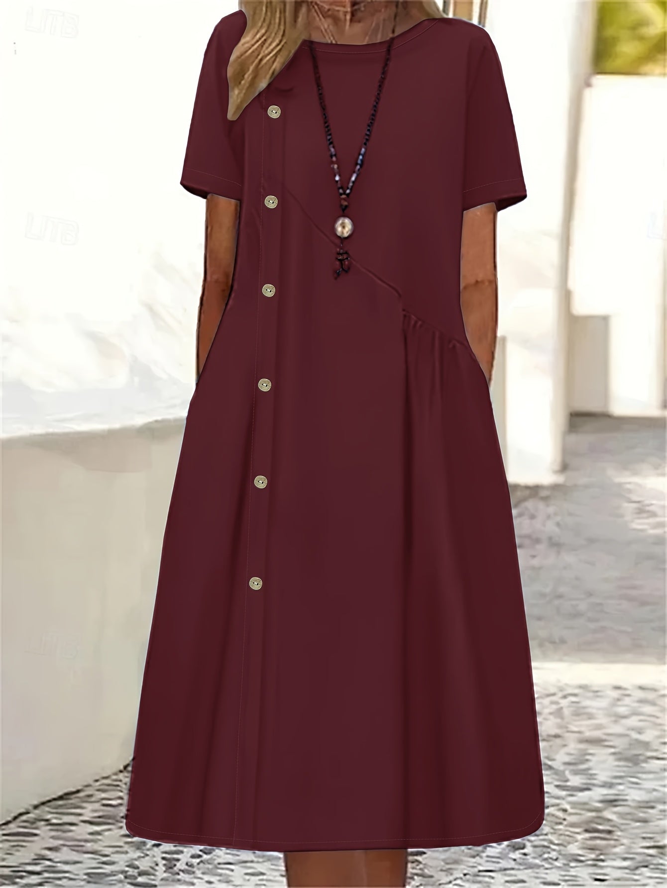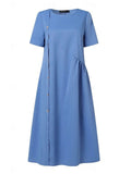 Sale Solid Color Single Breasted Simple Dress, Elegant Long Sleeve Maxi Loose Dress