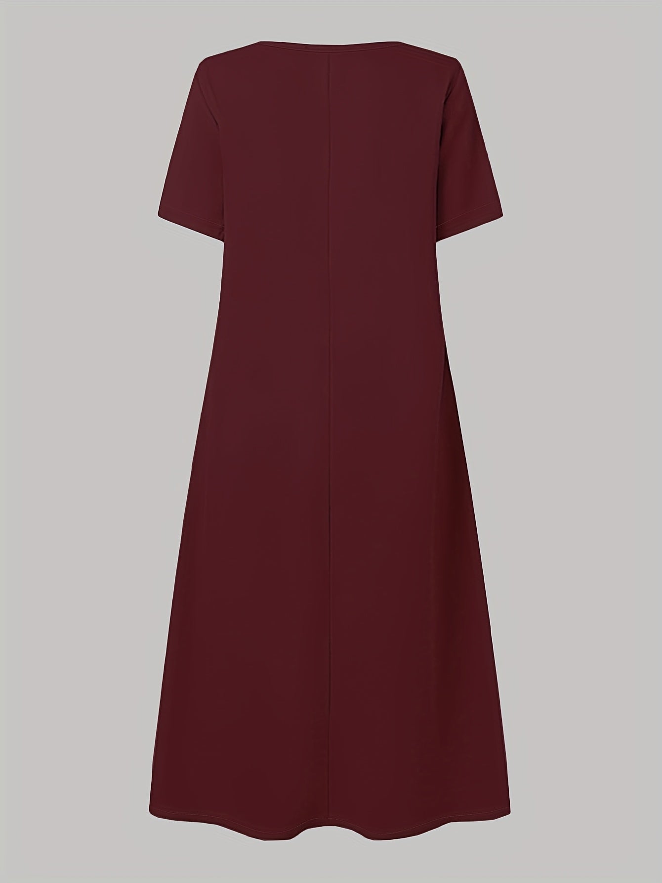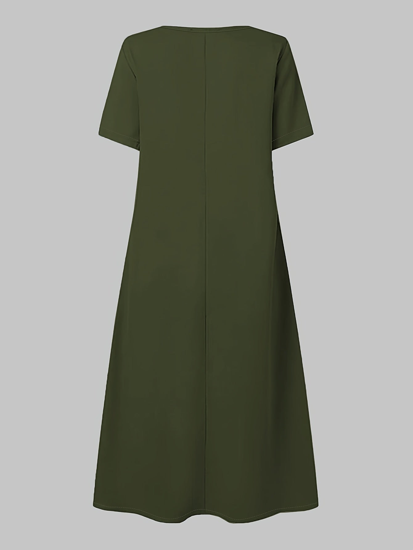 Add a touch of sweetness to your daily wardrobe with this V-neck, long dress featuring...
