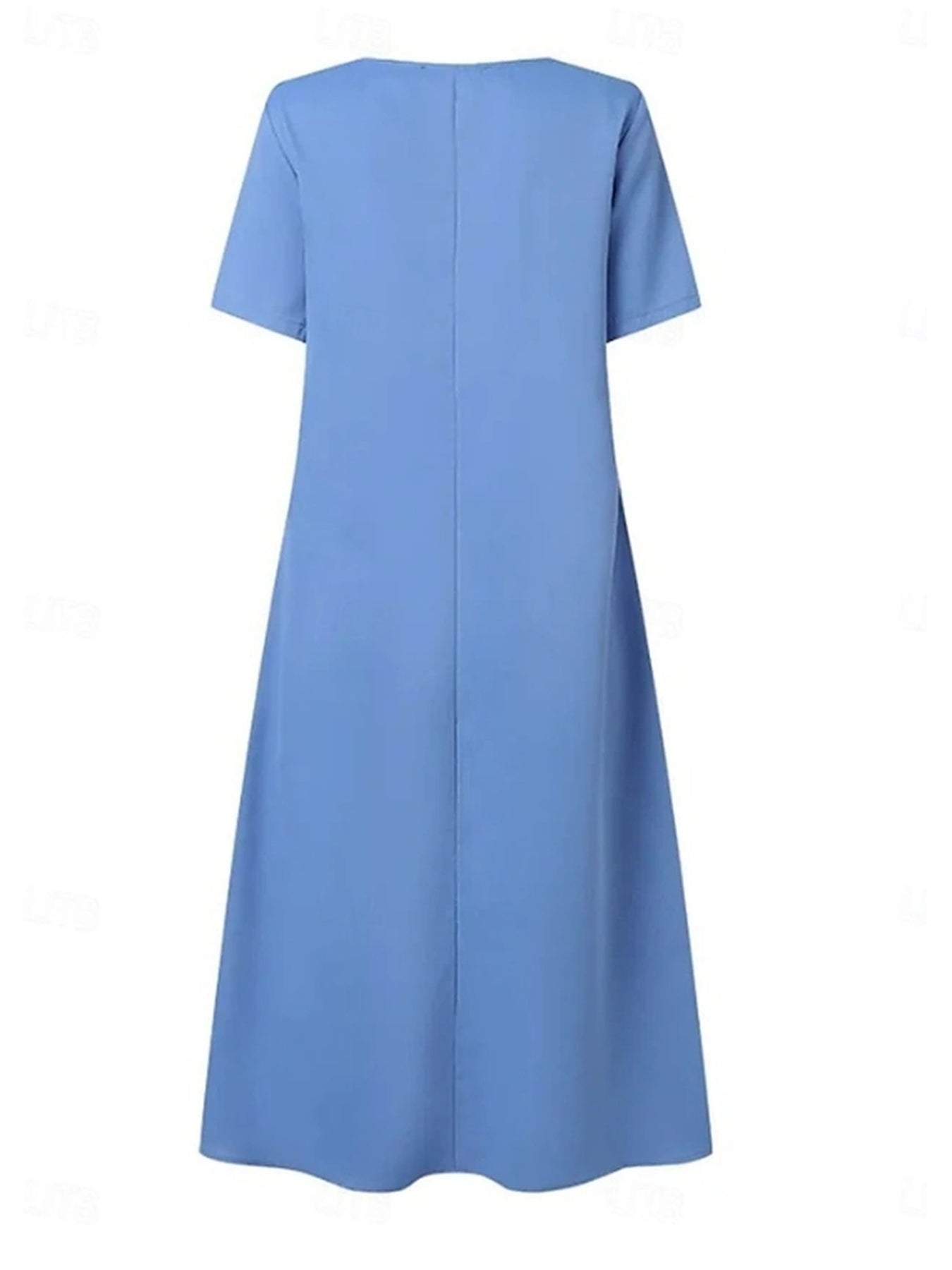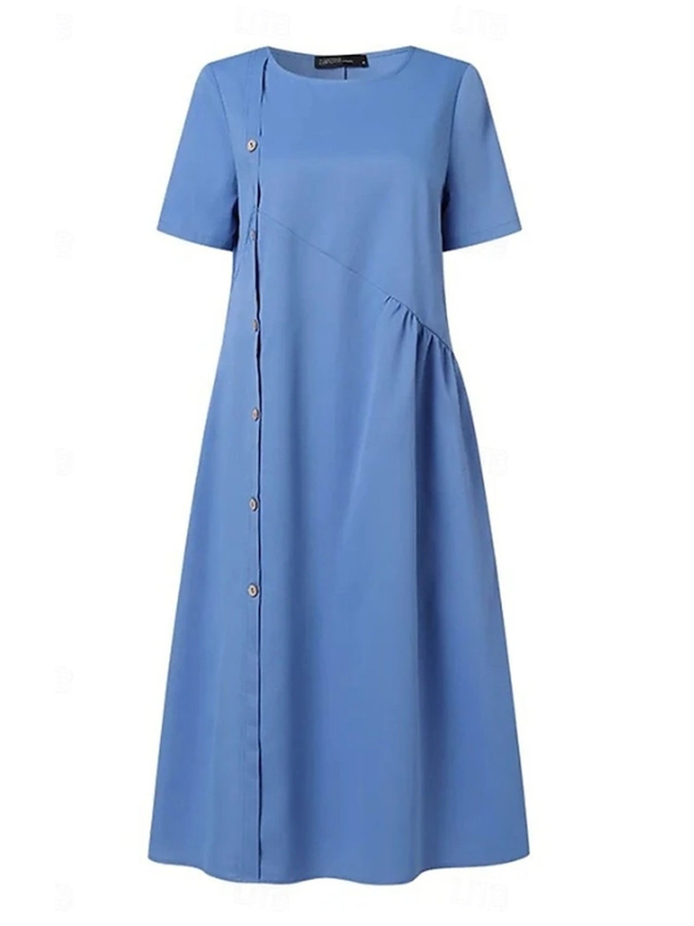 Sale Polyester Women's Summer Dress | Light Blue Casual A-Line Mini with Decorative Buttons