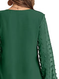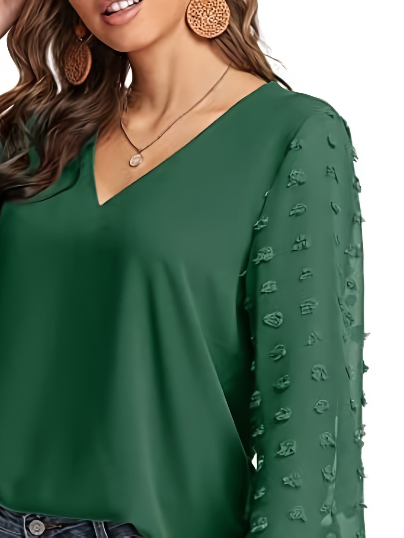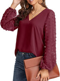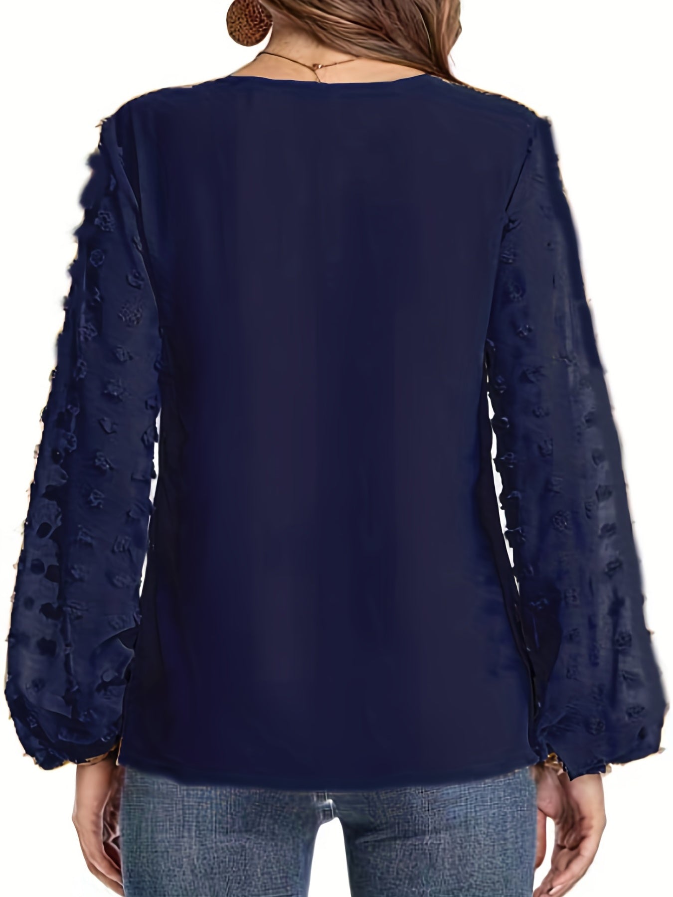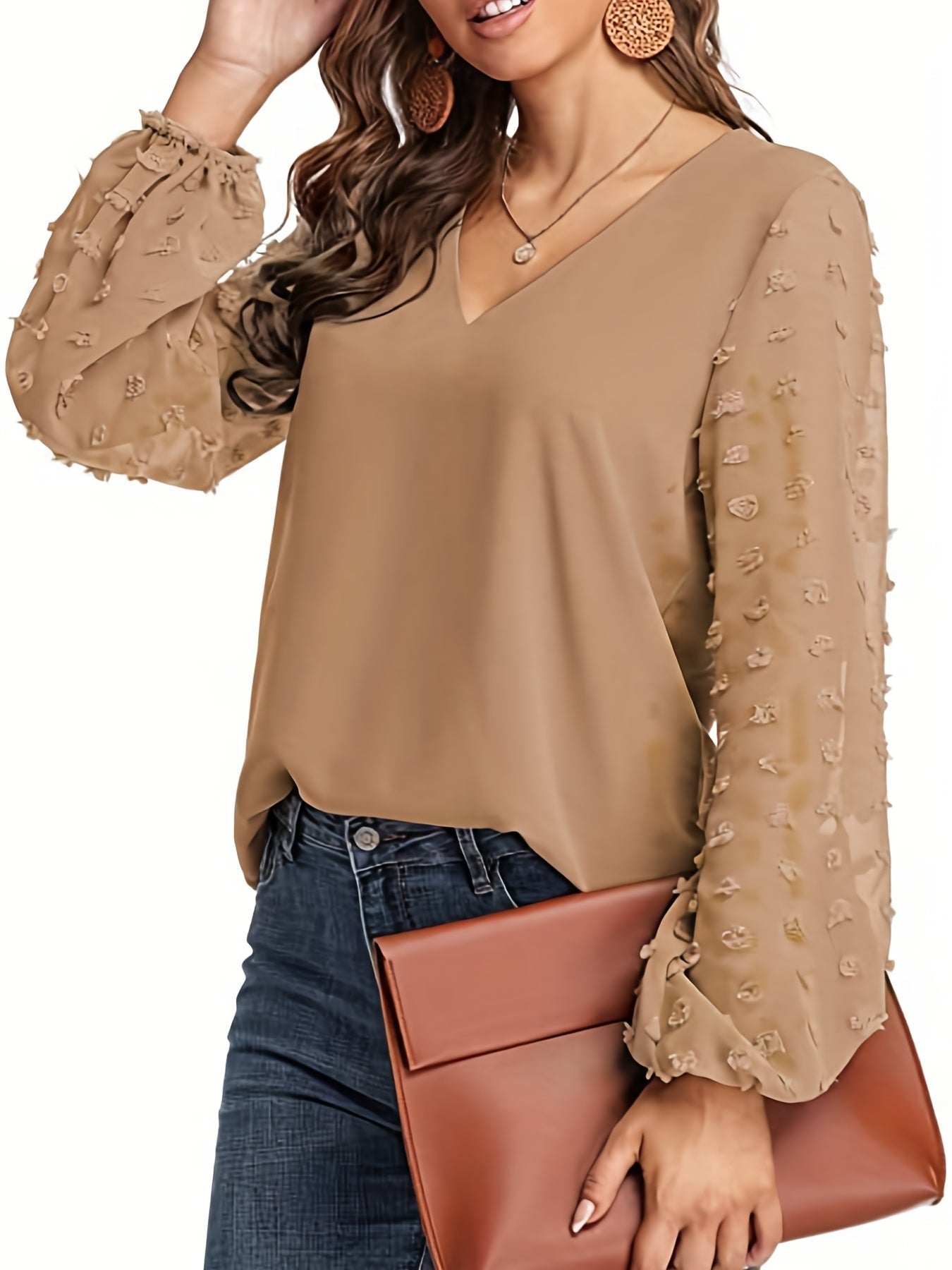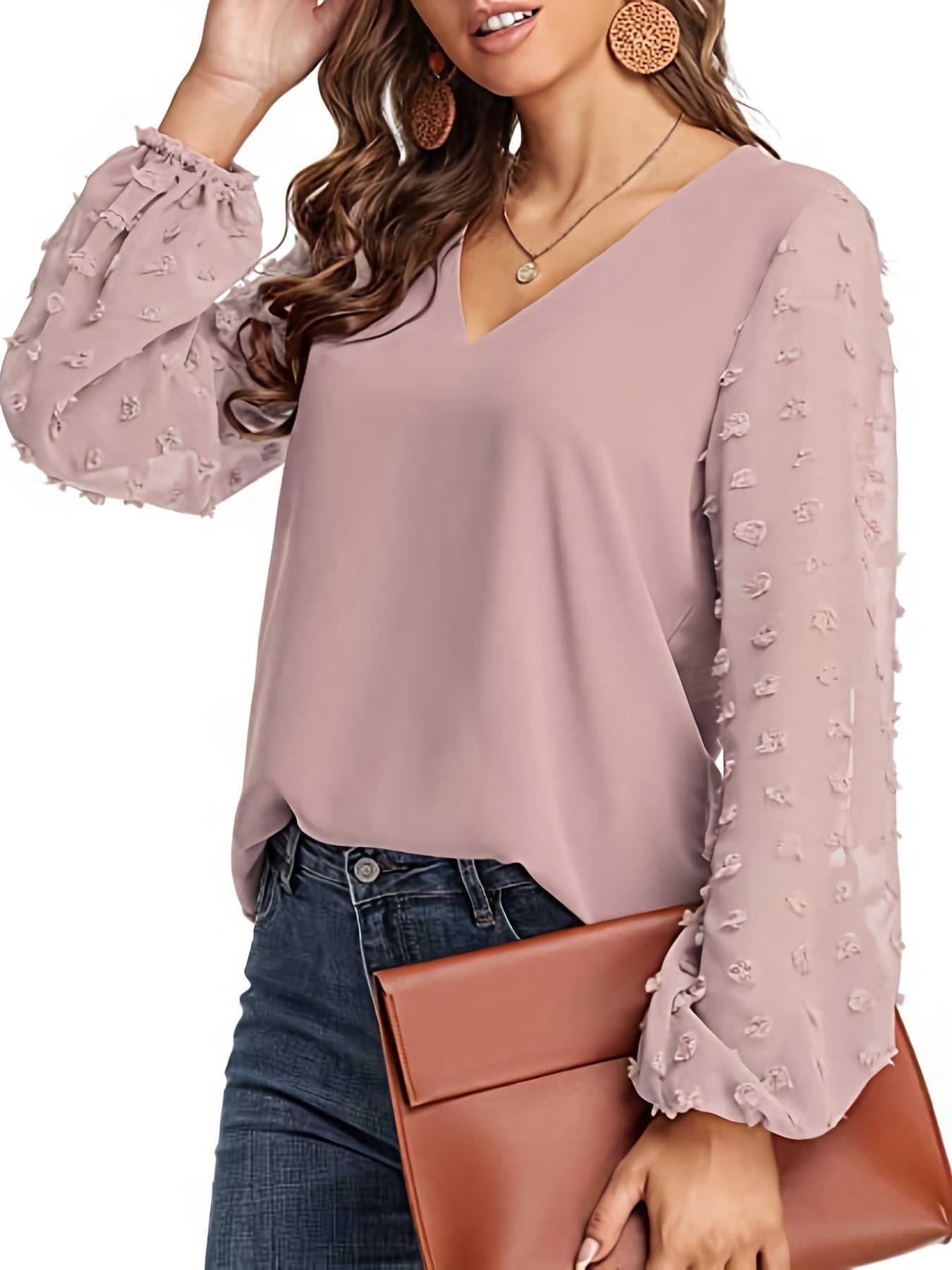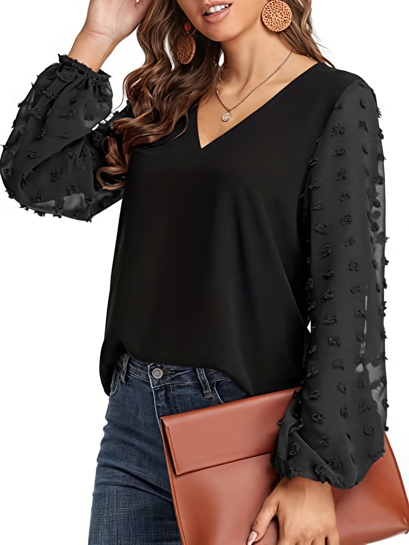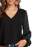 Swiss Dot Sleeve Shirt, Casual V Neck Solid Shirt