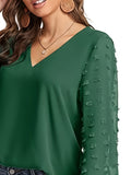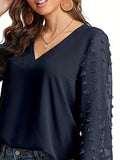 Sale Swiss Dot Sleeve Shirt, Casual V Neck Solid Shirt