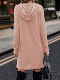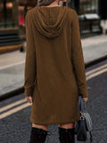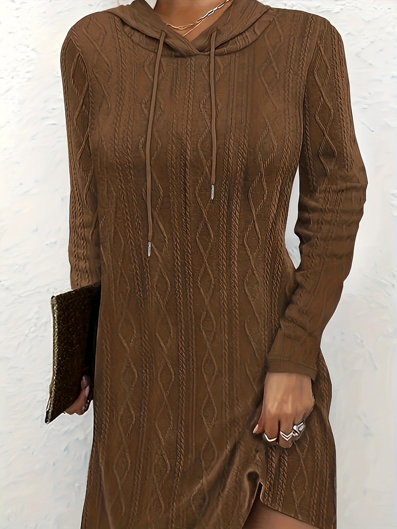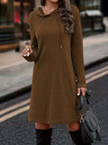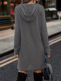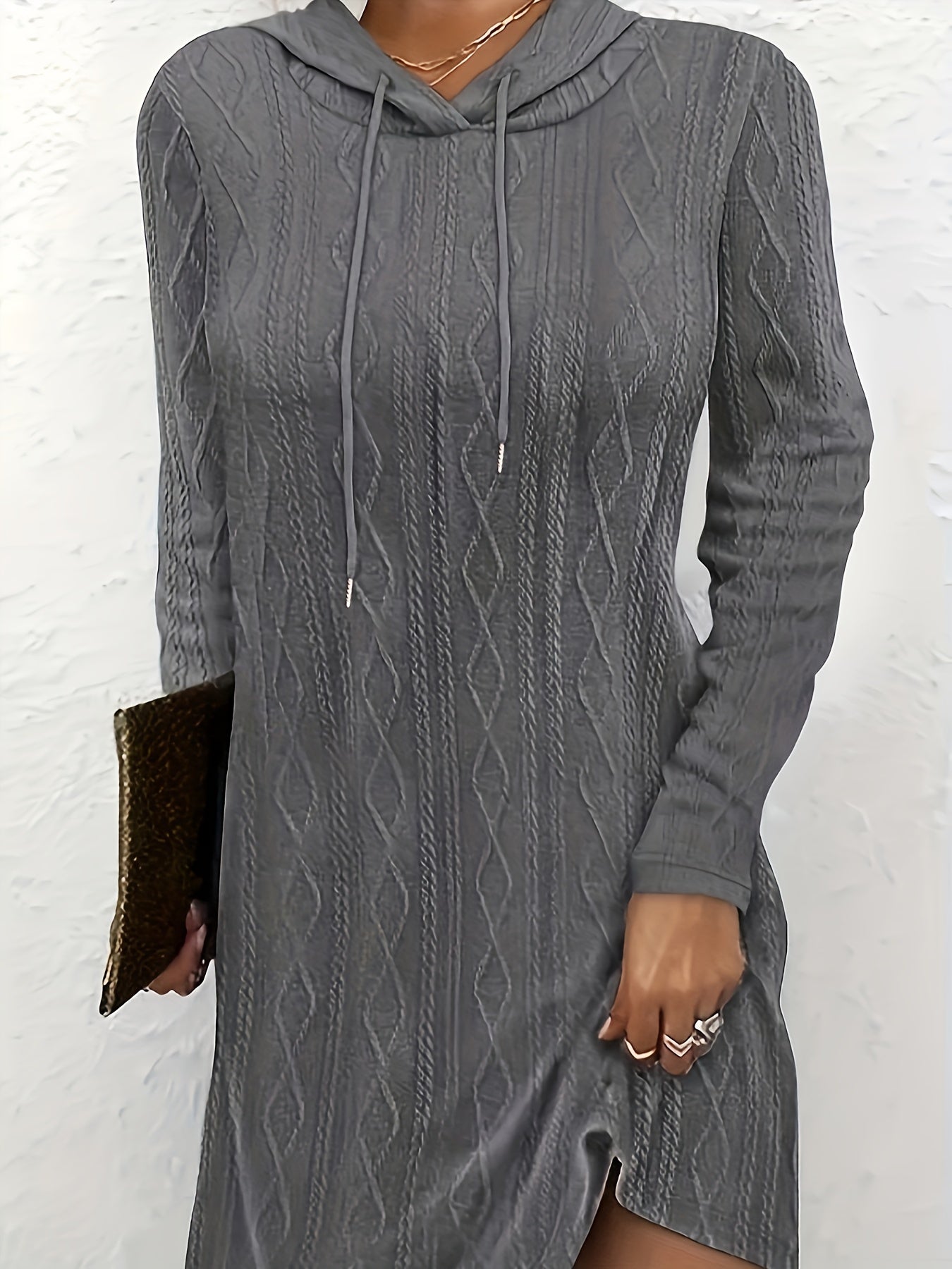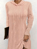 Textured Drawstring Hooded Dress, Casual Long Sleeve Above Knee Dress