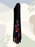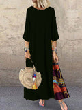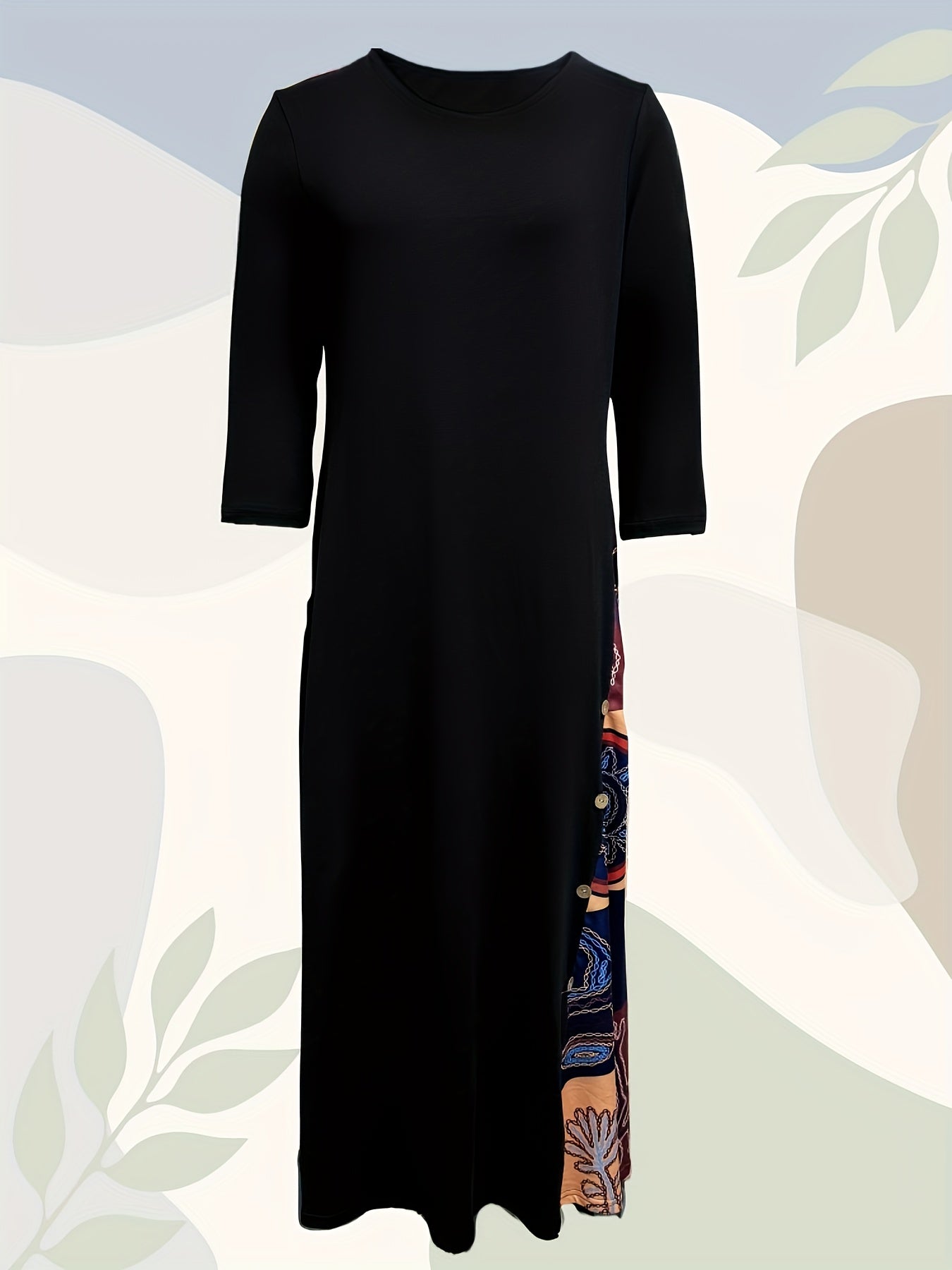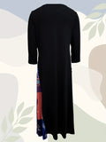 Sale Tribal Print Crew Neck Panel Dress, Casual Long Sleeve Loose Maxi Dress