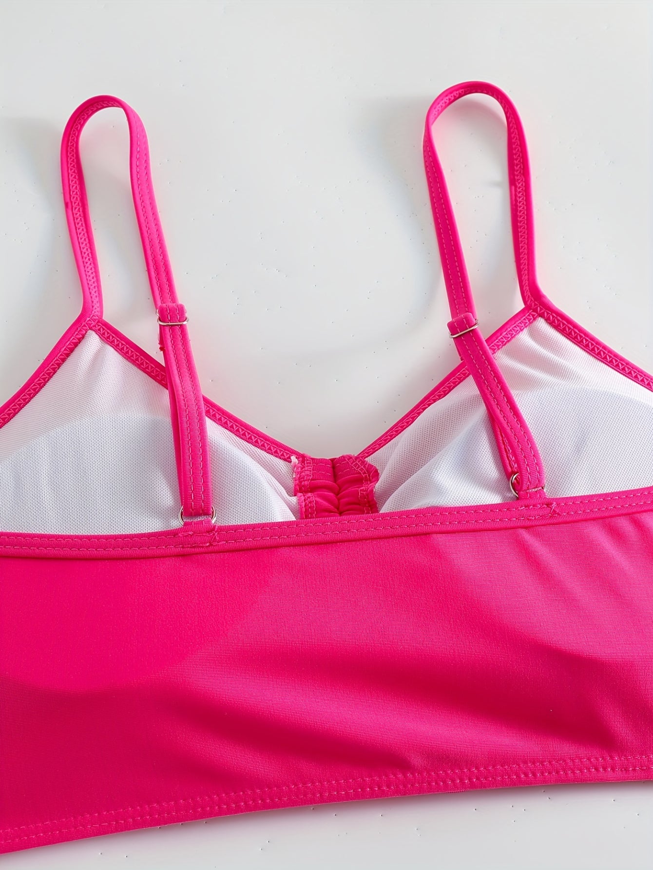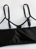 Sale Plain Mesh Contrast Criss Cross Skirted 2 Piece Set Bikini, Scoop Neck Spaghetti Strap Twist Solid Color Swimsuit For Beach Pool Bathing