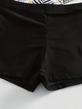 Sale Tropical Leaf Print V Neck High Waist Bikini Sets, Drawstring Spaghetti Straps Boxer Short Bottoms Two Pieces Swimsuit