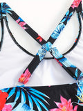 Sale Green Floral Print Racerback Cutout High Waist 2pcs Bikini