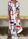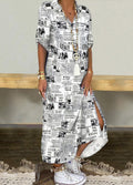 Sale Solid Color Single Breasted Simple Dress, Elegant Long Sleeve Maxi Loose Dress