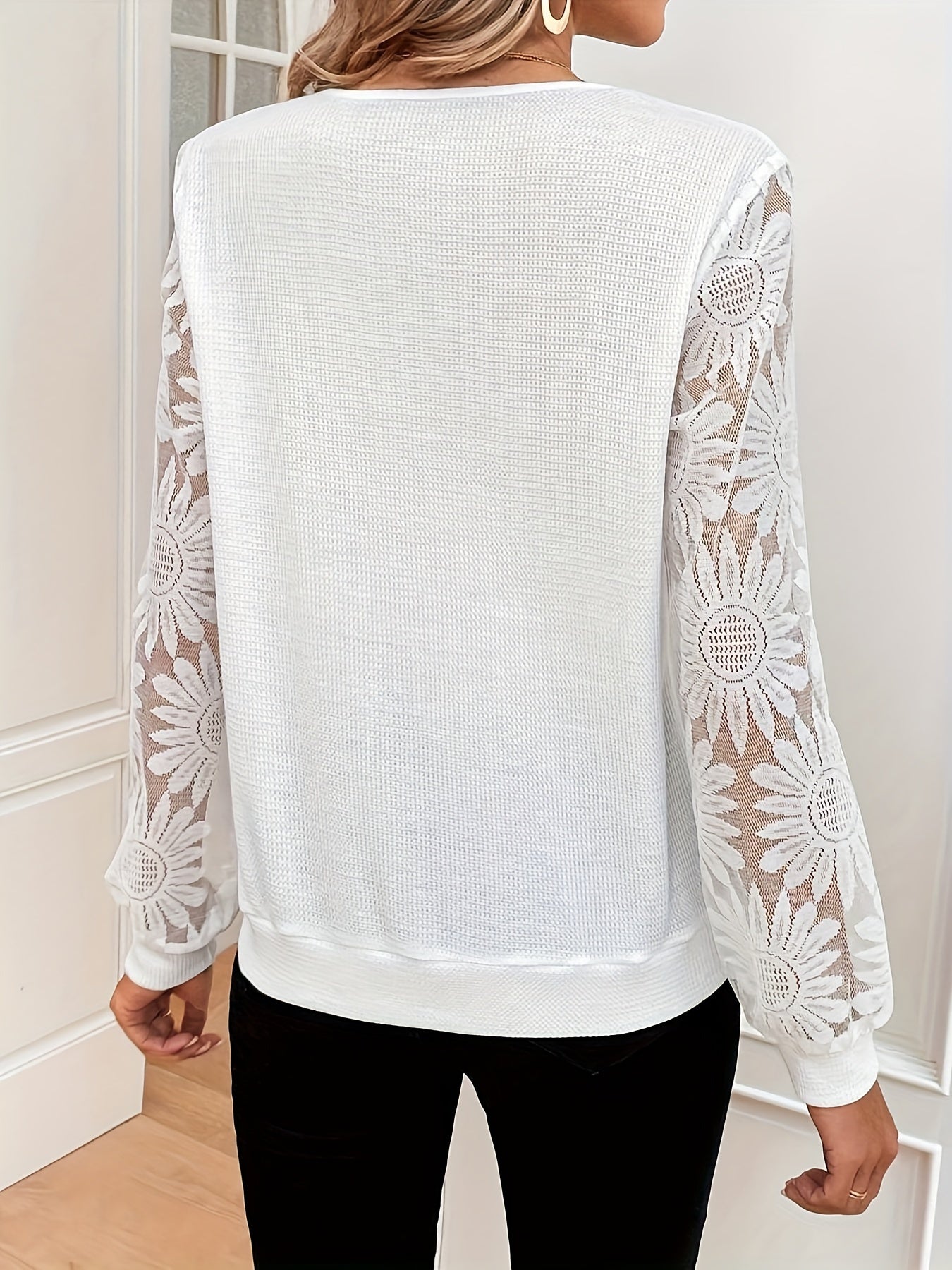 Sale Casual Contrast Lace Round Neck Long Sleeve T-Shirt