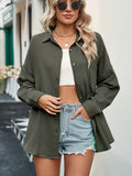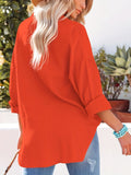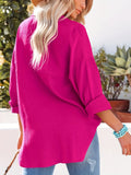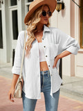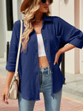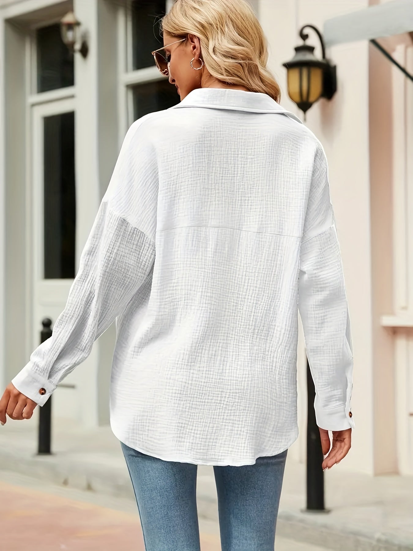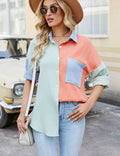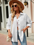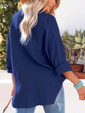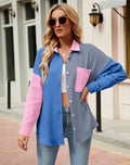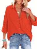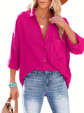 V-neck Loose Lapel Blouses, Casual Pocket Button Down Long Sleeve Fashion Shirts Tops