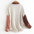 Sale Women's Color Block Quarter Zip T-Shirt - Casual Long Sleeve Top