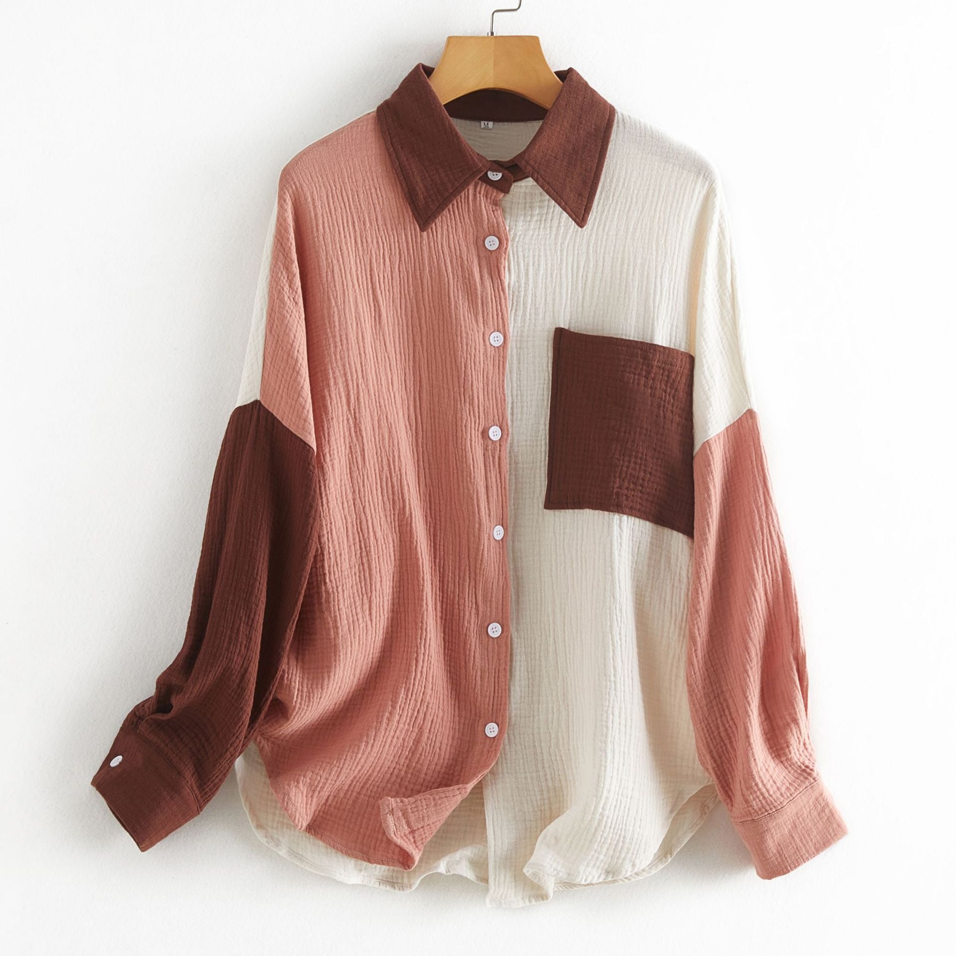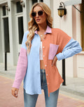 Sale V-neck Loose Lapel Blouses, Casual Pocket Button Down Long Sleeve Fashion Shirts Tops