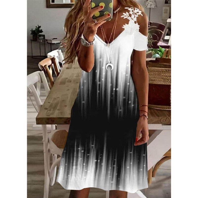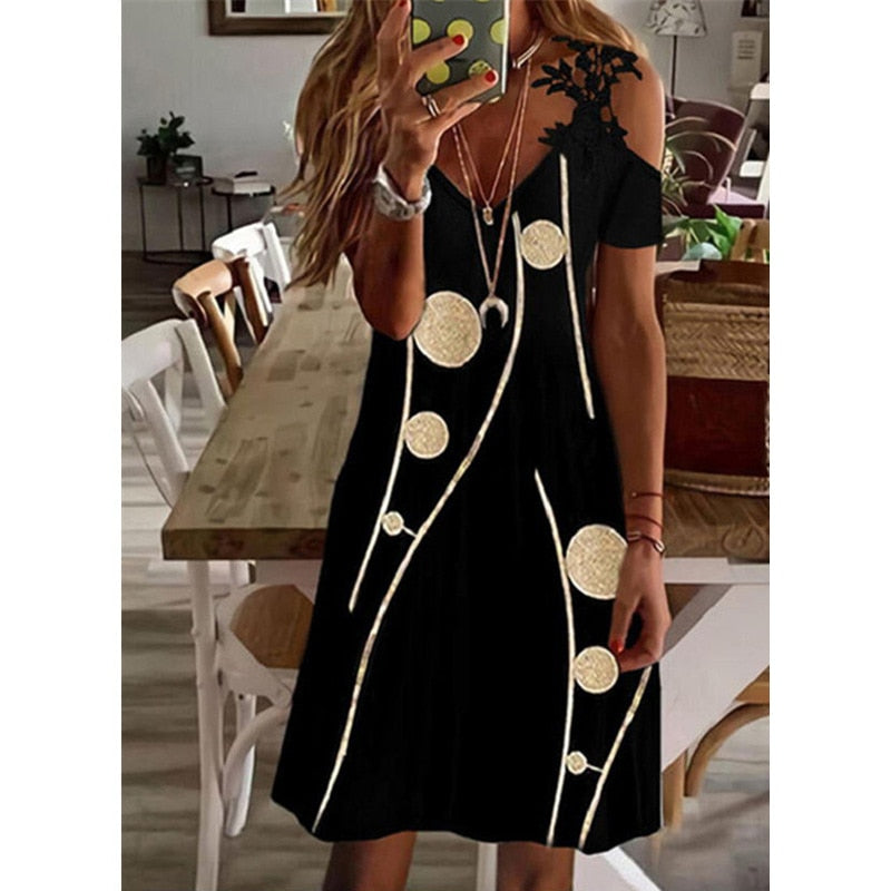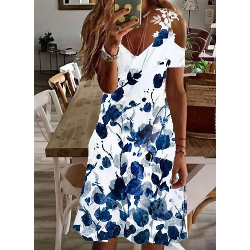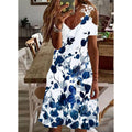 Sale V Neck Short Sleeves Print Casual Midi Dress