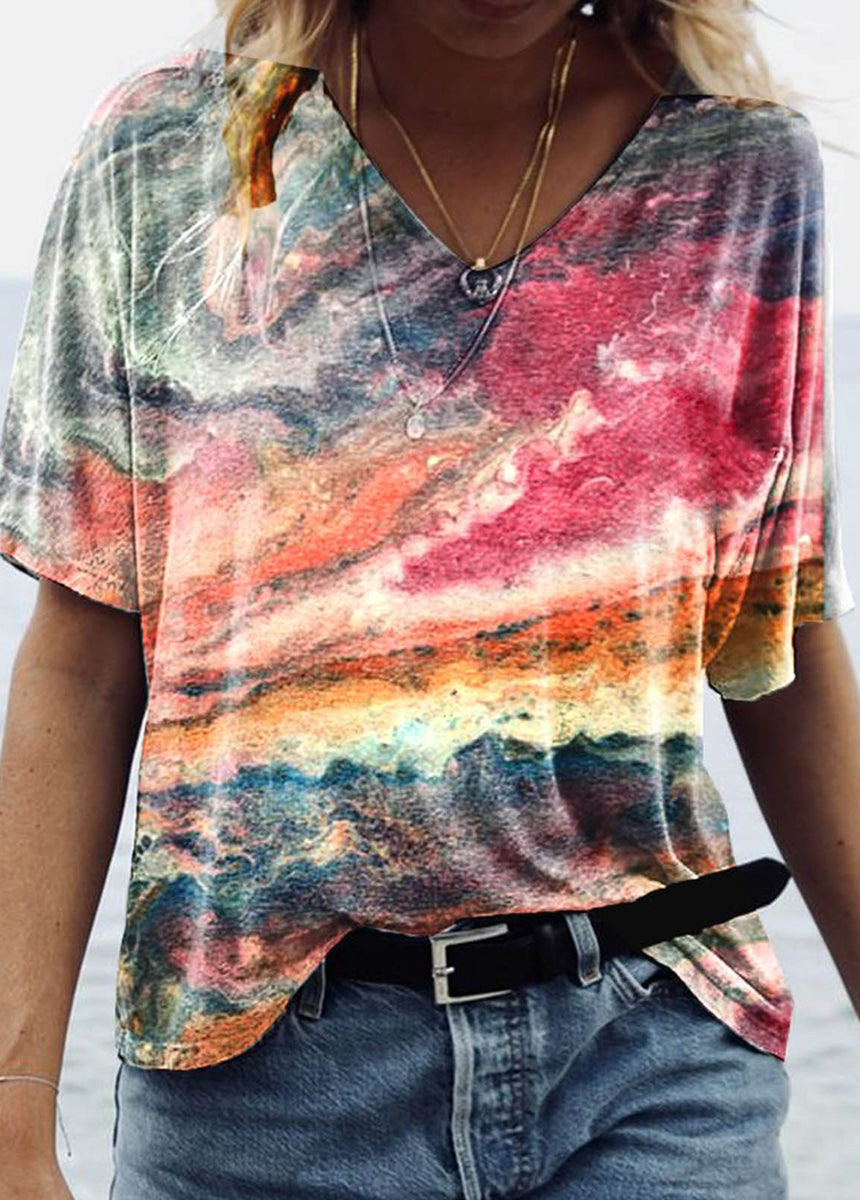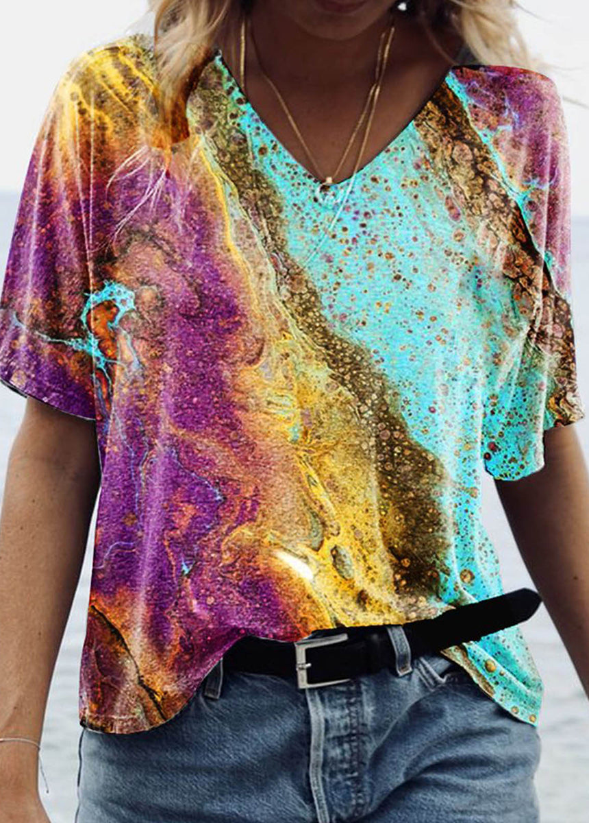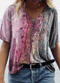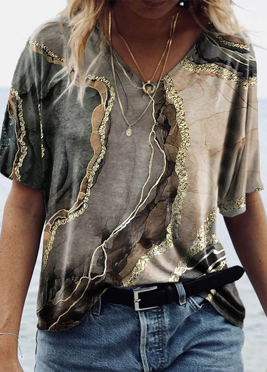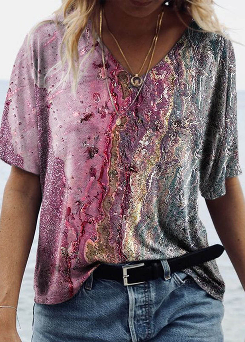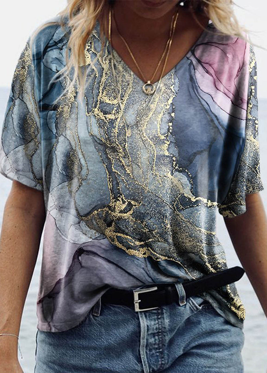 Sale V-Neck Short Sleeve Marble Print T-Shirt