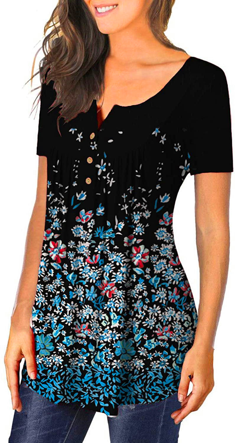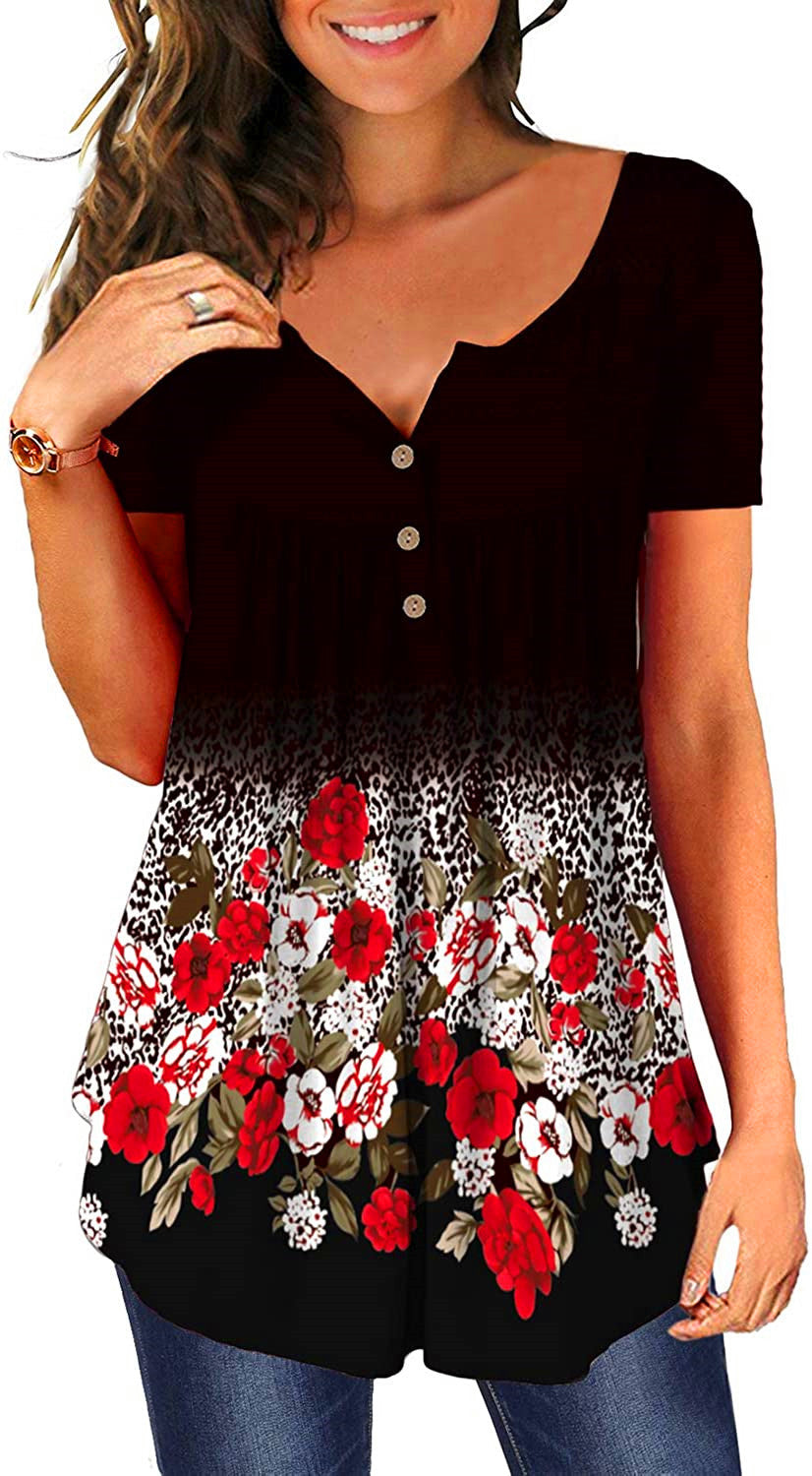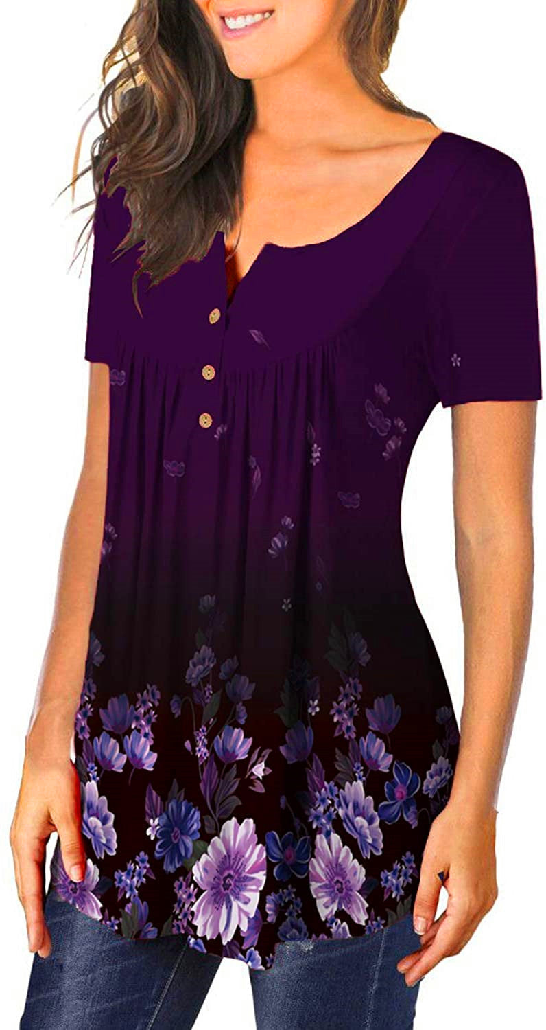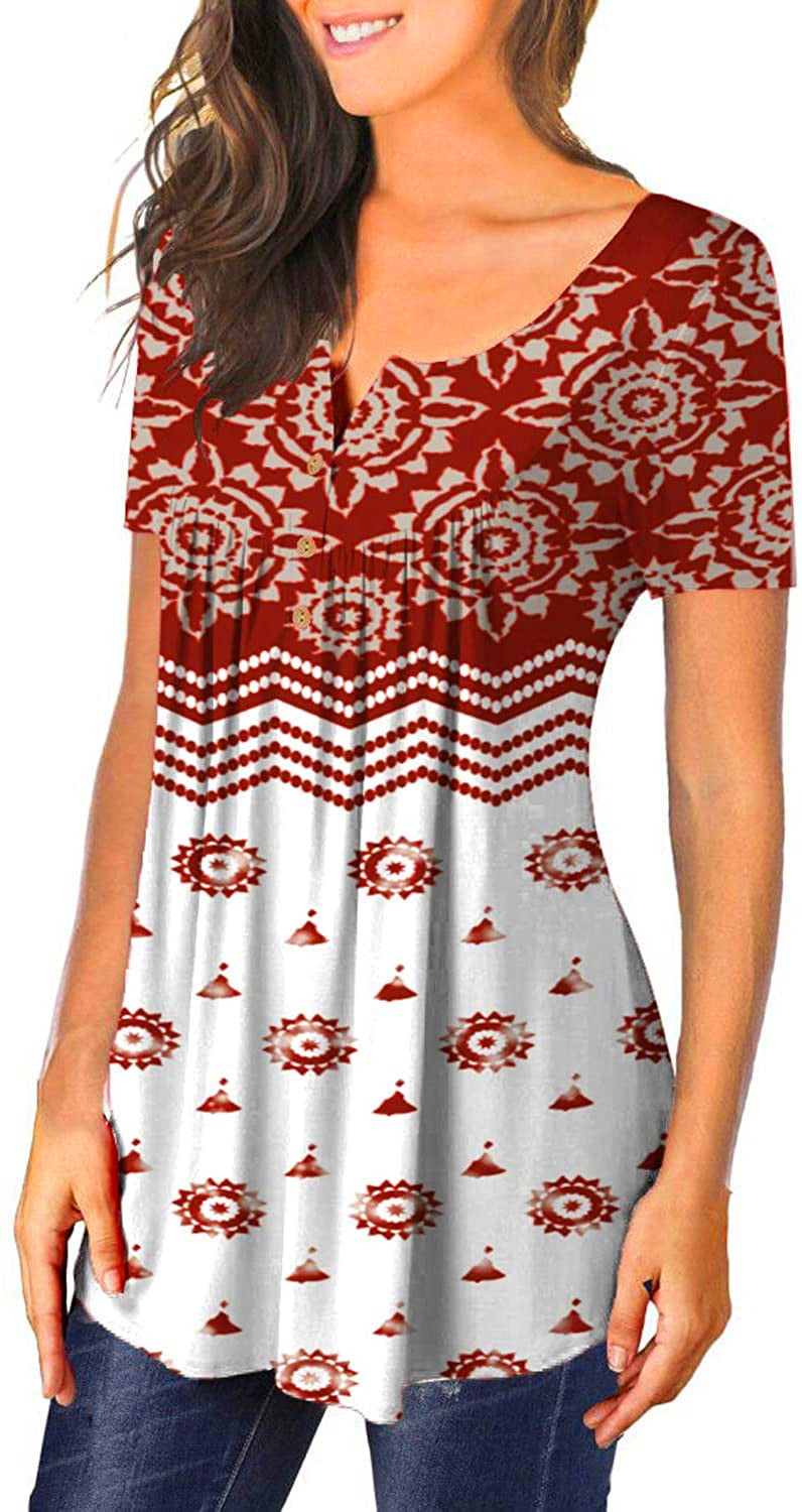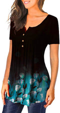 Christmas Tree Print Button Decor T-shirt, Casual Long Sleeve Plaid Print T-shirt