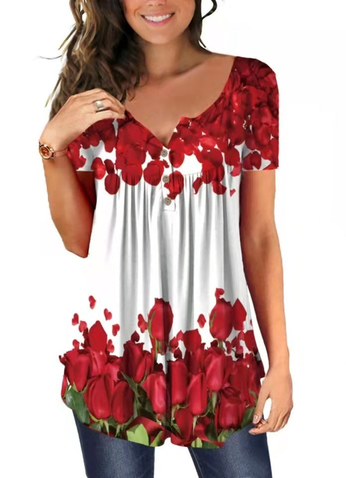 Long Sleeve Spring/Fall Floral Printing V Neck Daily Going Out Vintage Top