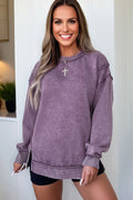 Valerian Mineral Wash Exposed Seam Side Slit Sweatshirt