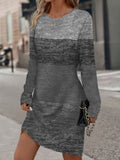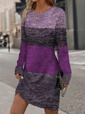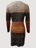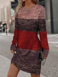Vibrant Color Block Crew Neck Elegant Long Sleeve Dress
