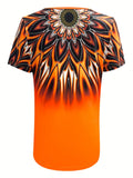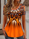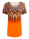 Vibrant Floral Print Crew Neck Short Sleeve Ombre T-Shirt