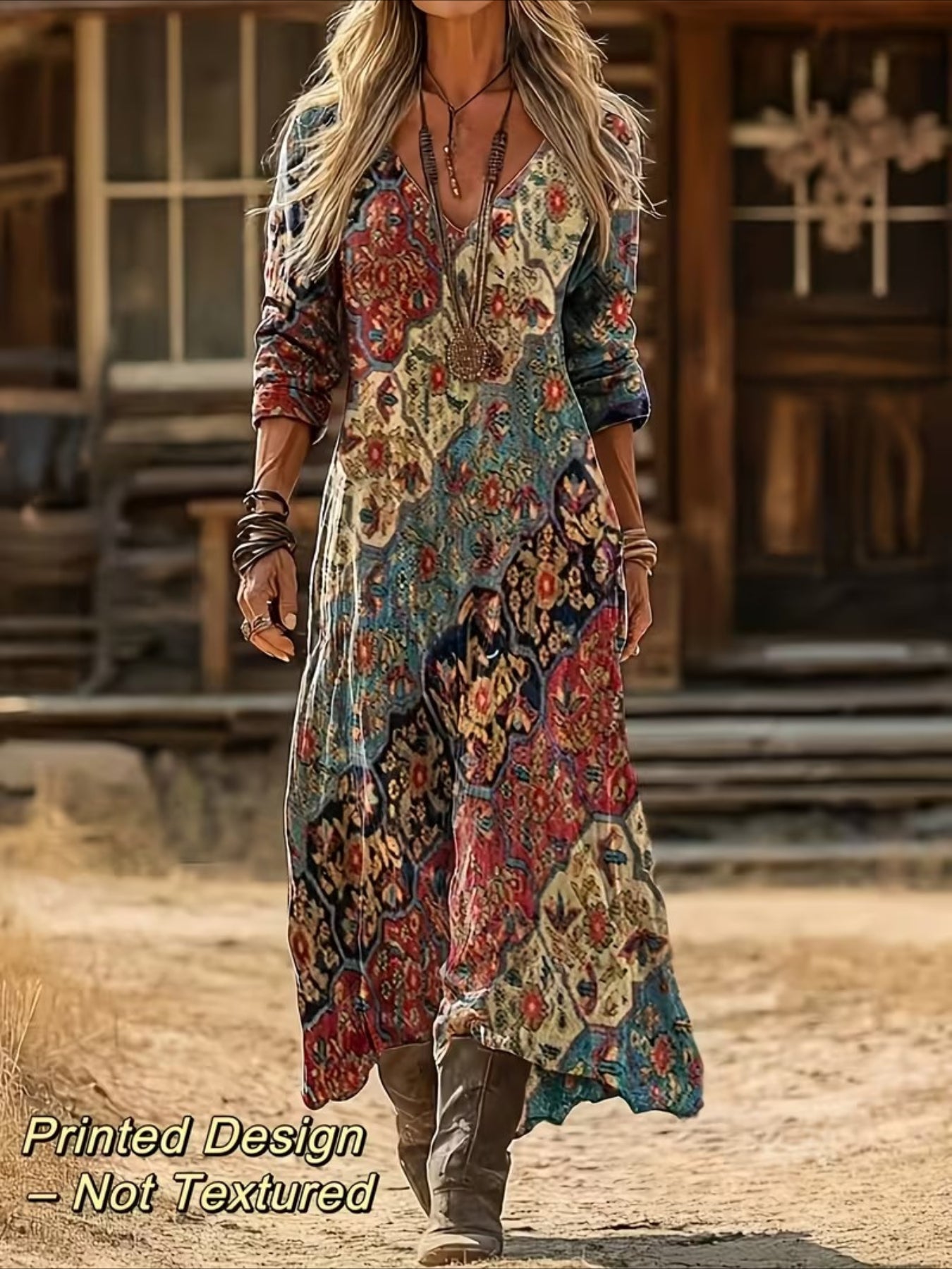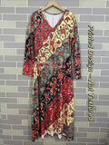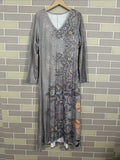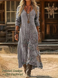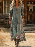Vintage Ethnic Floral Digital Print Long Sleeve Dress