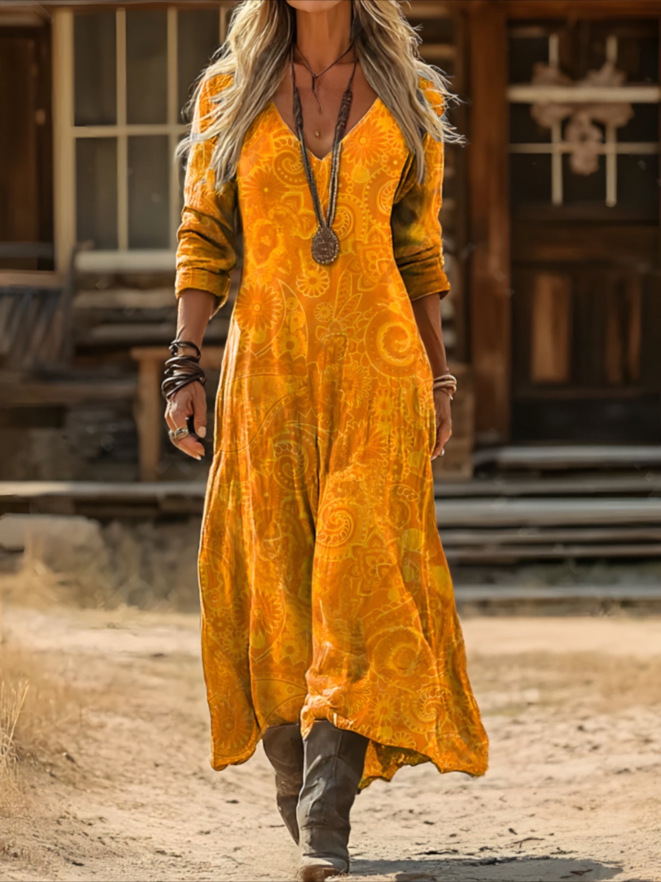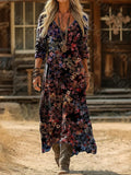 Sale Vintage Casual Daily Regular Fit Floral Long Sleeve V Neck Maxi Dress