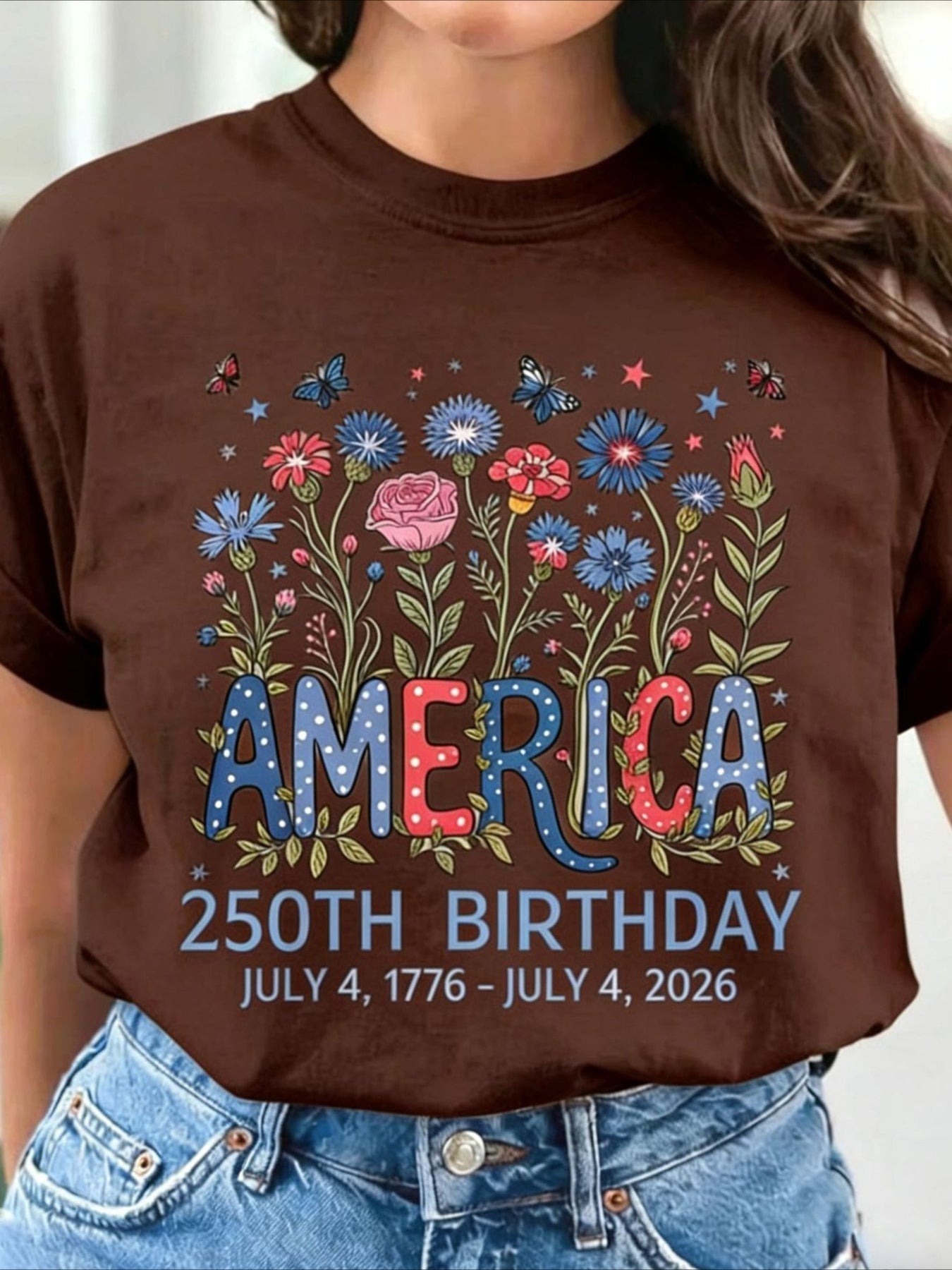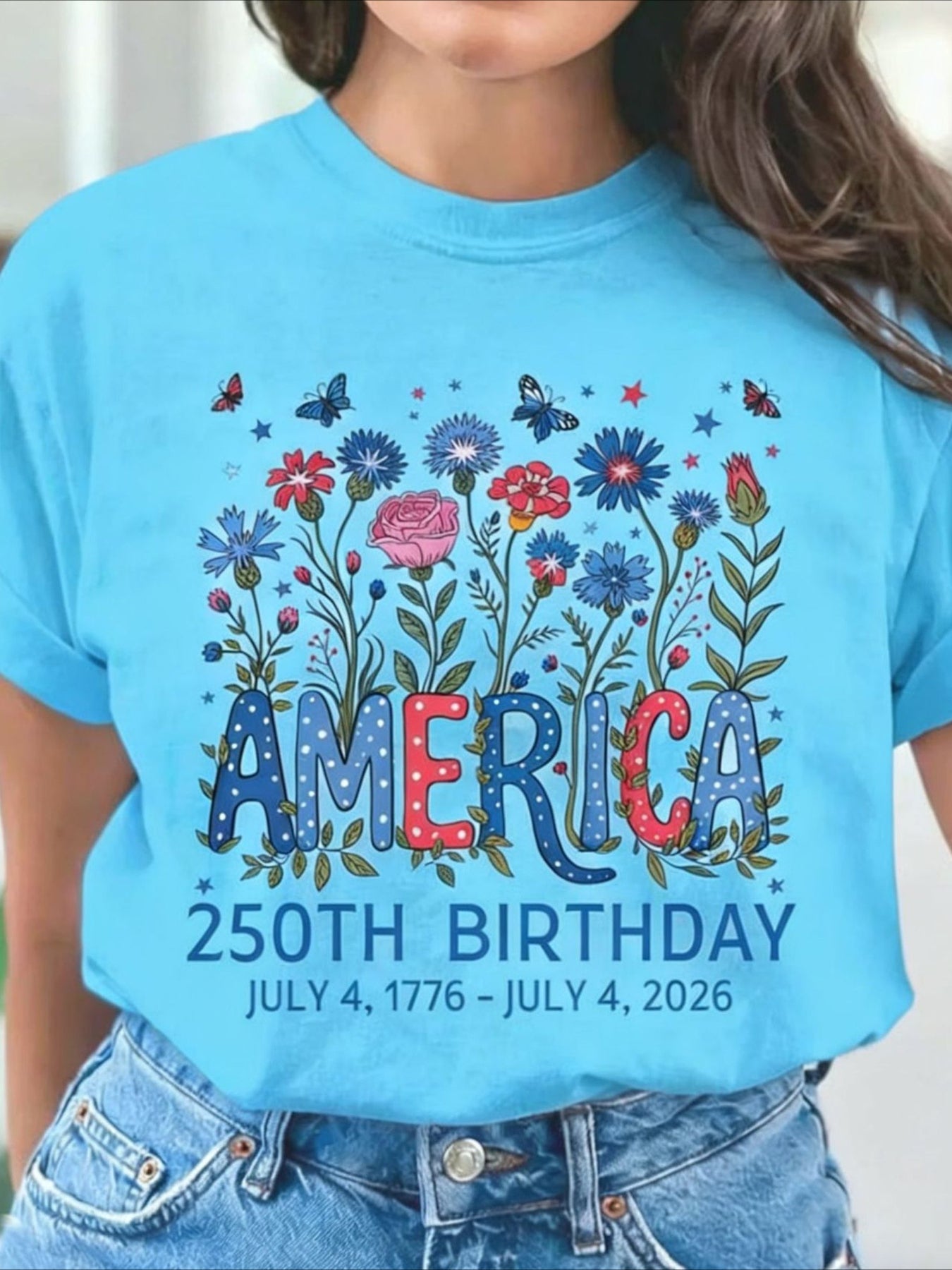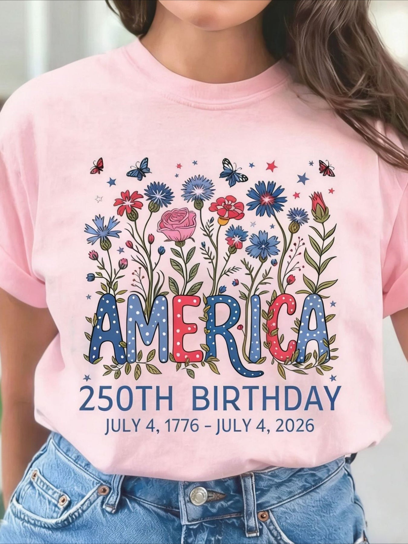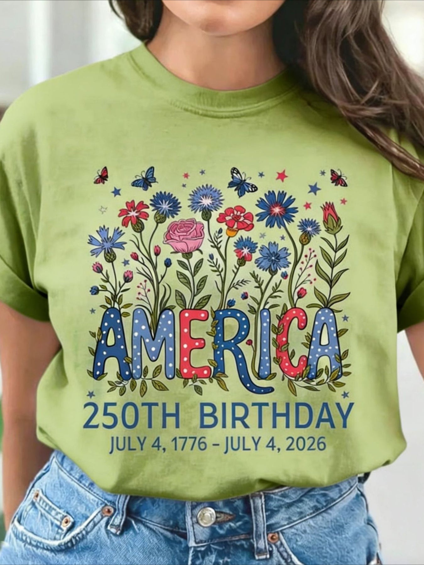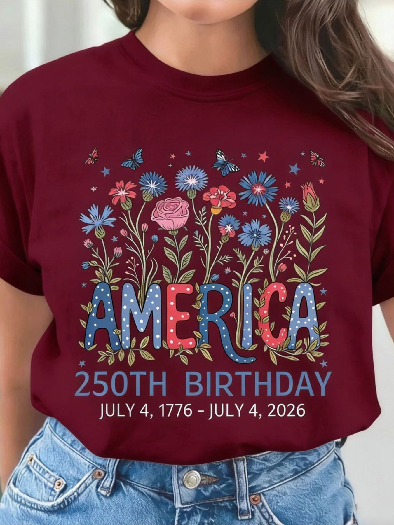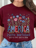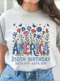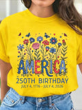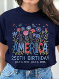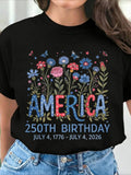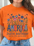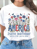 USA 250th Anniversary Printed Crew Neck Floral Long Sleeve Sweater Hoodie