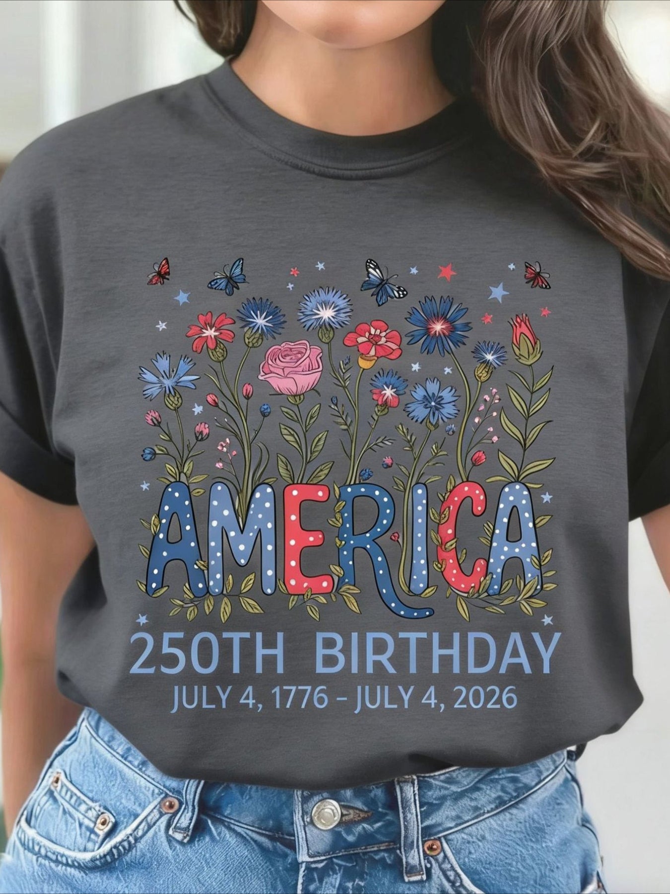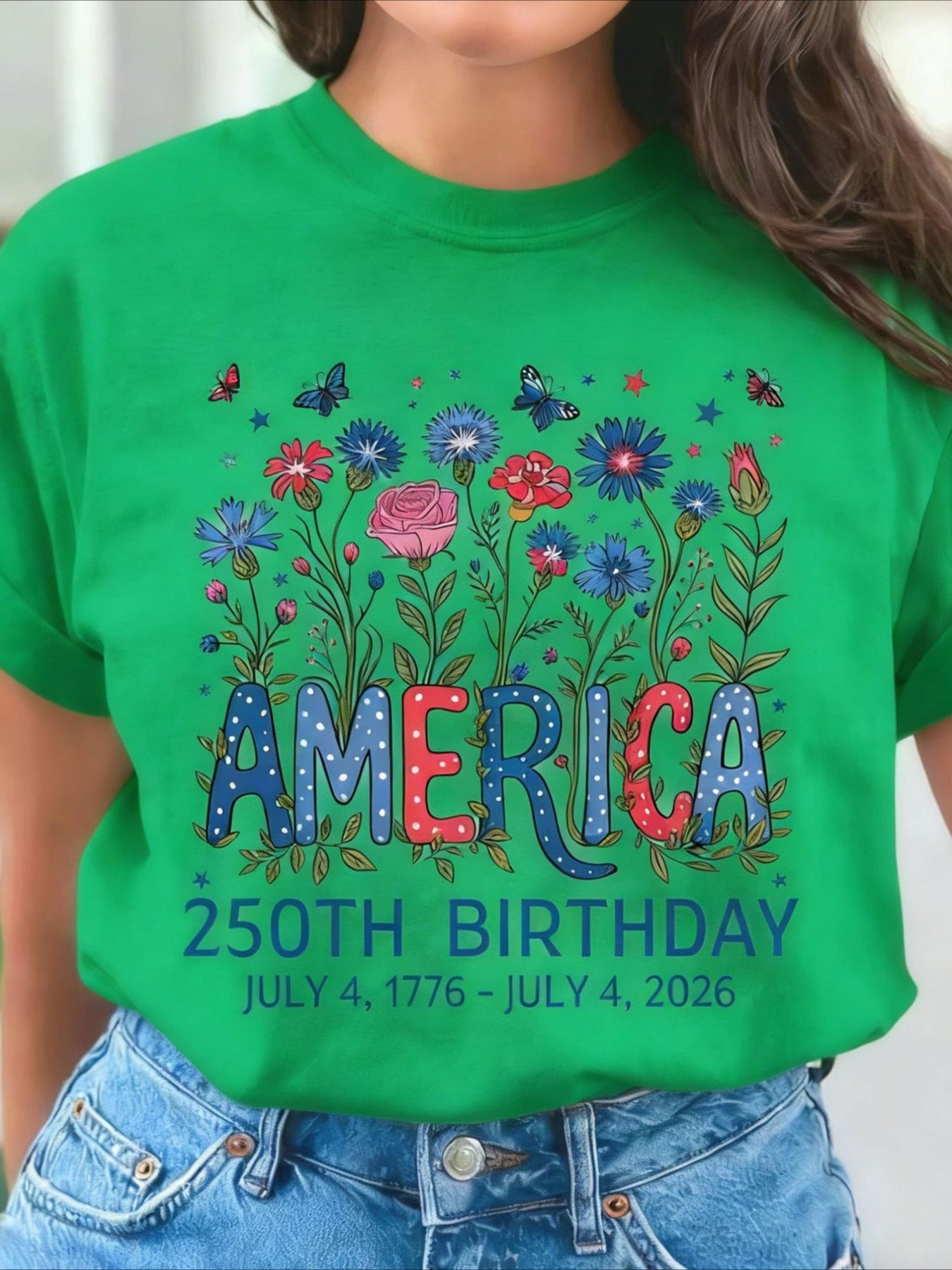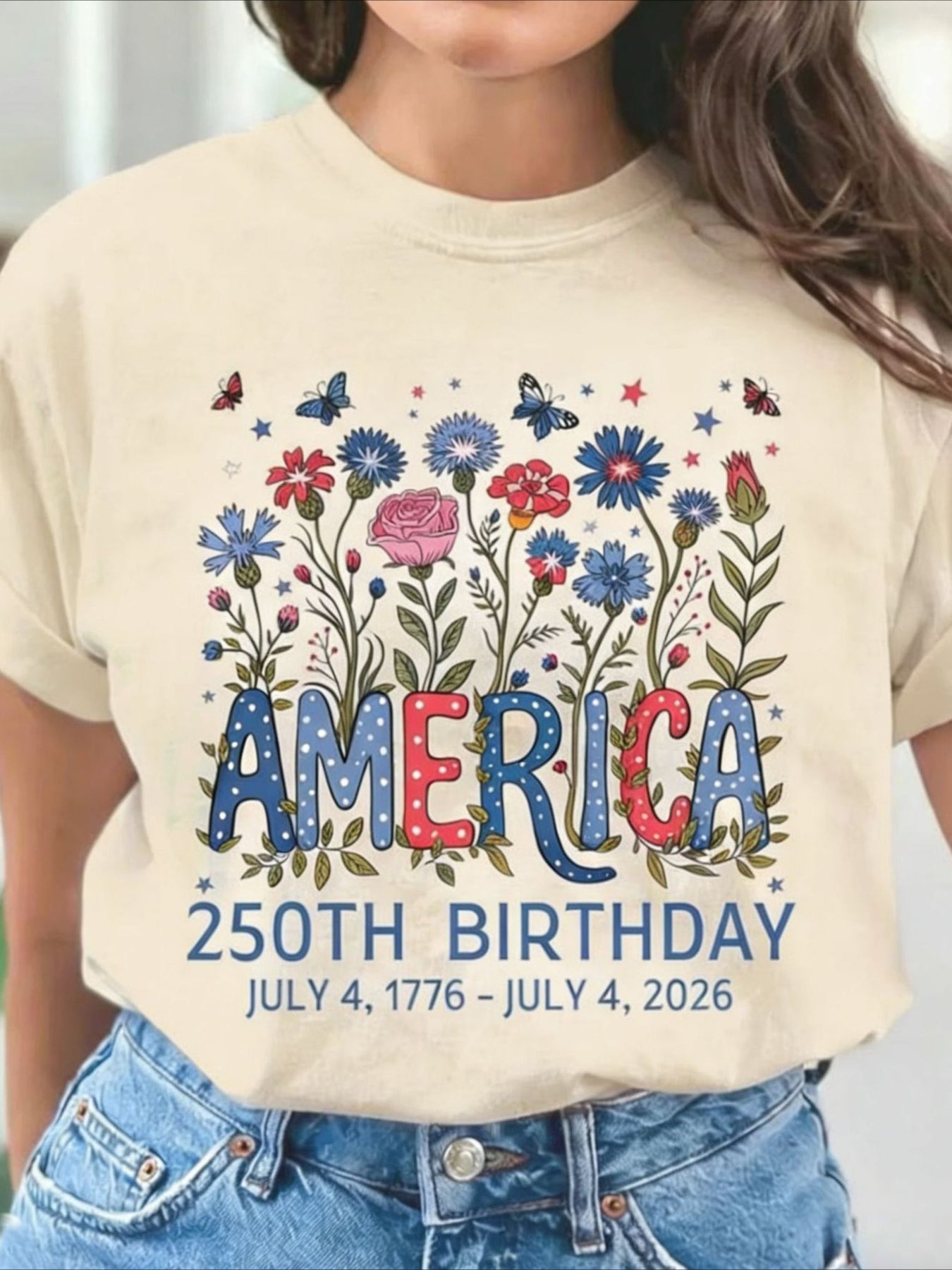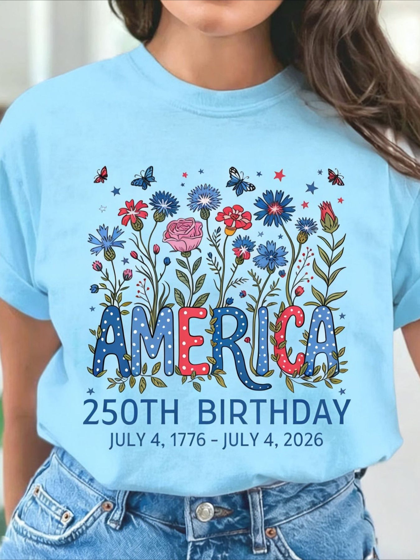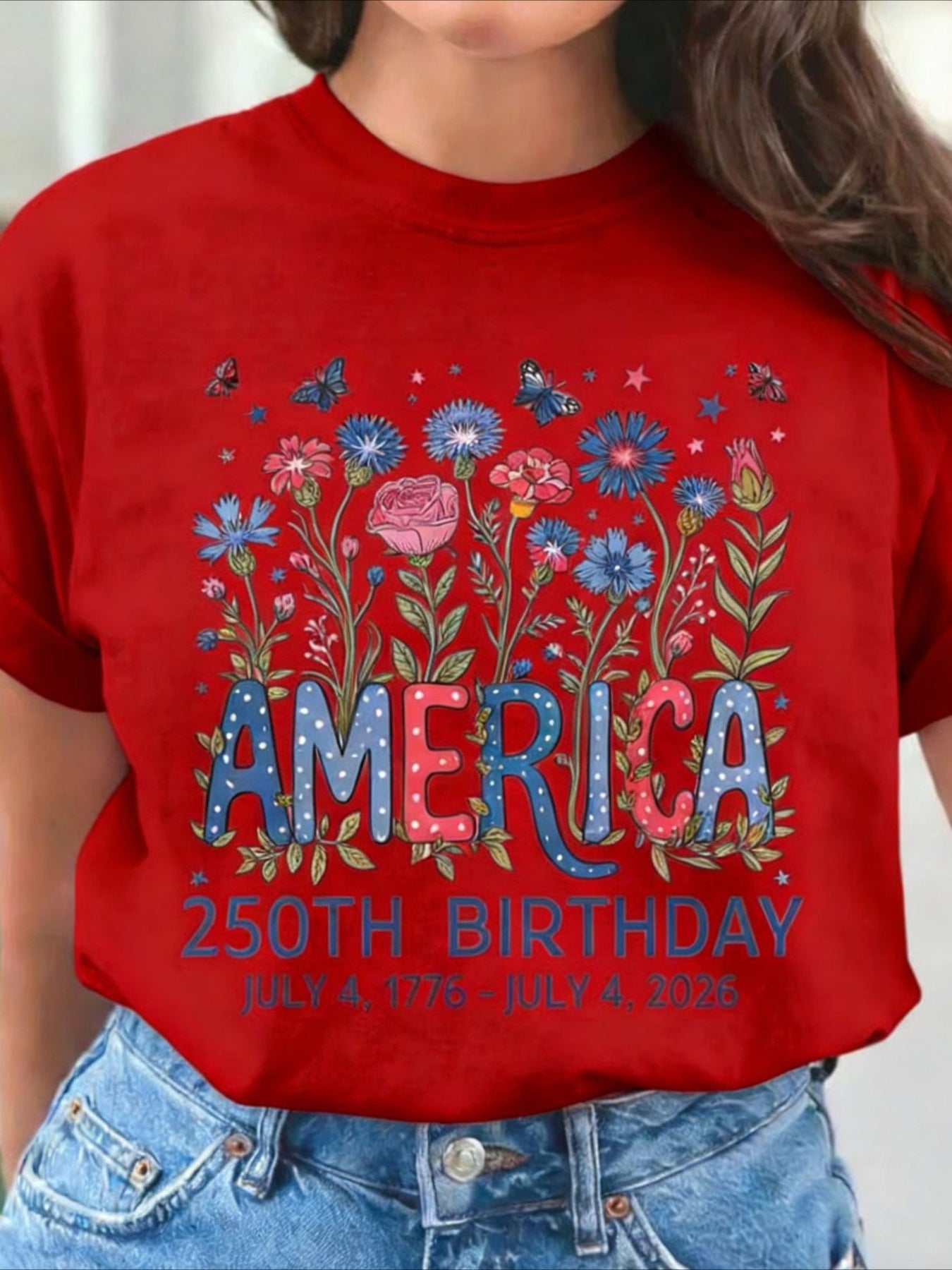 USA 250th Anniversary Printed Crew Neck Floral Long Sleeve Sweater Hoodie