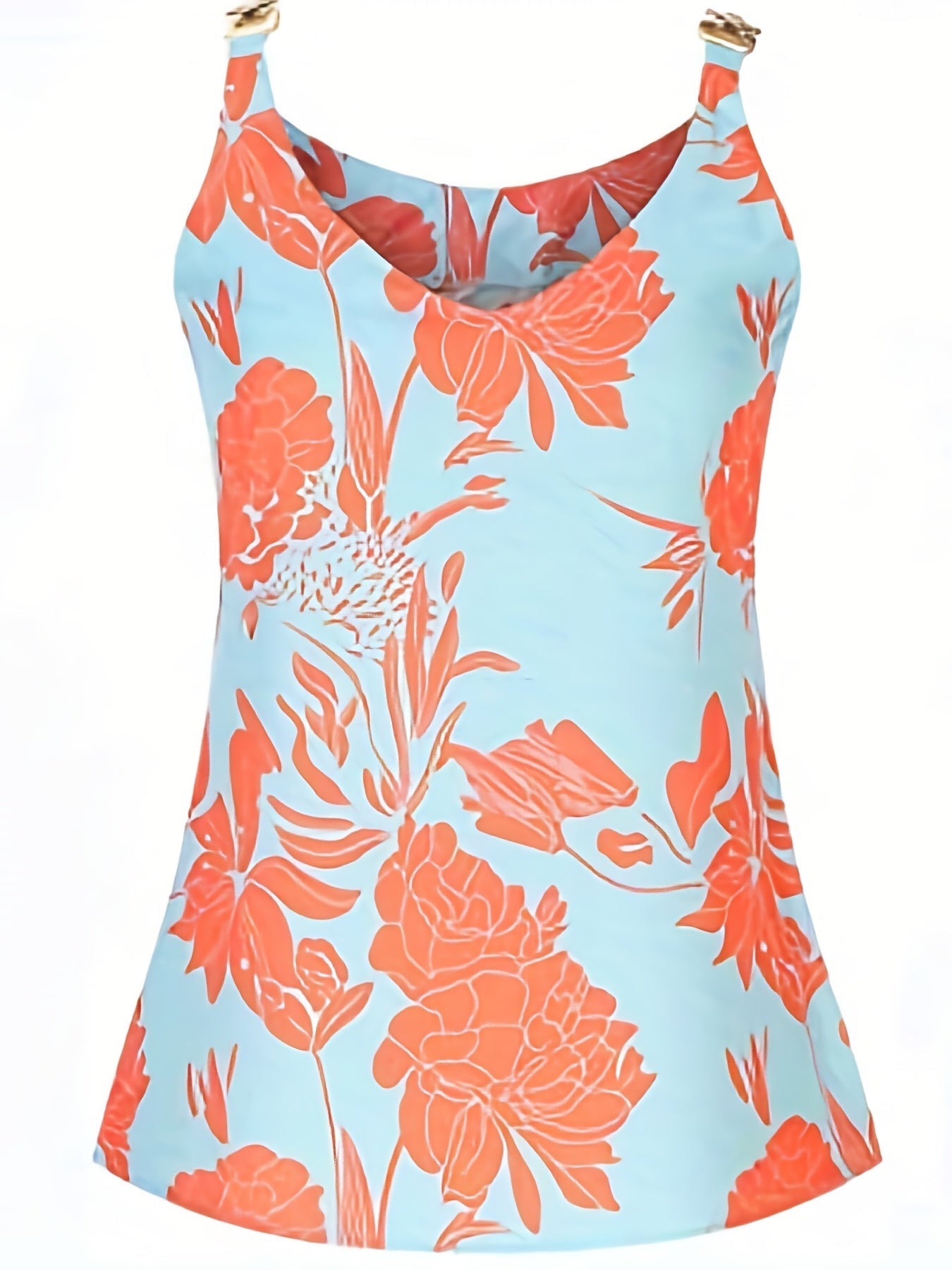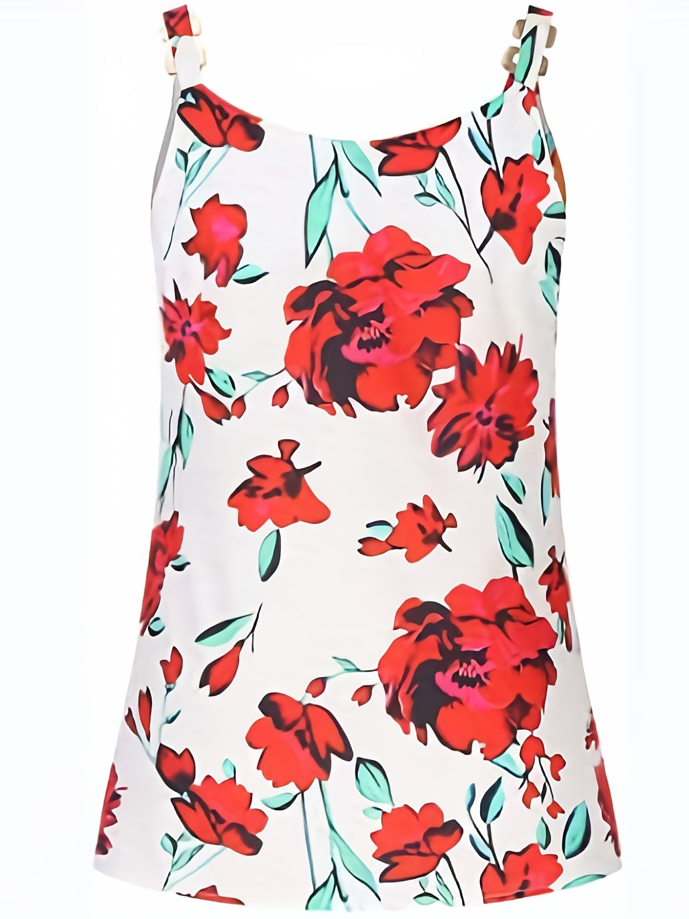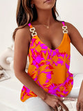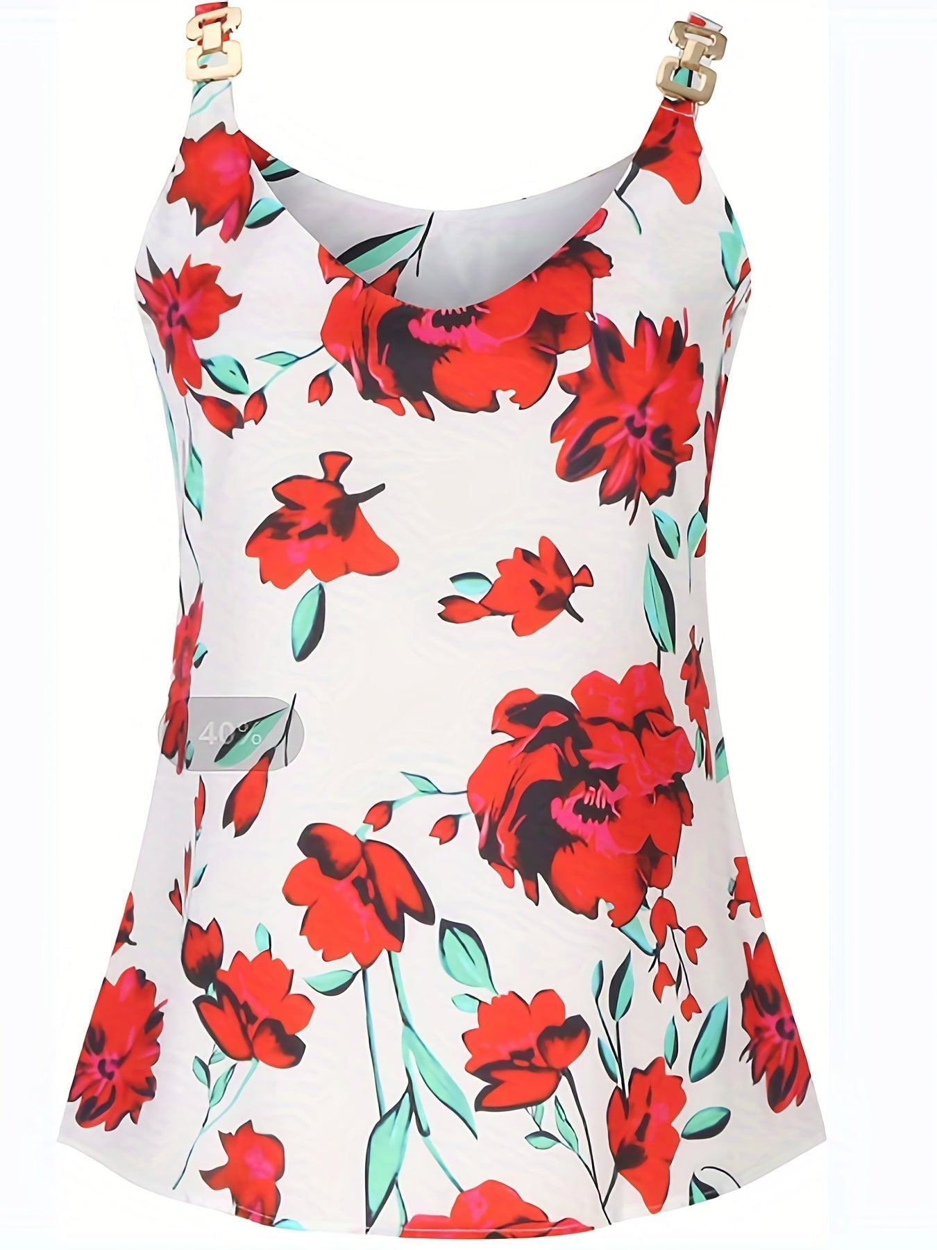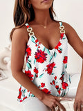 Vintage Floral Print Vest, Casual V Neck Sleeveless Chain Tank Tops
