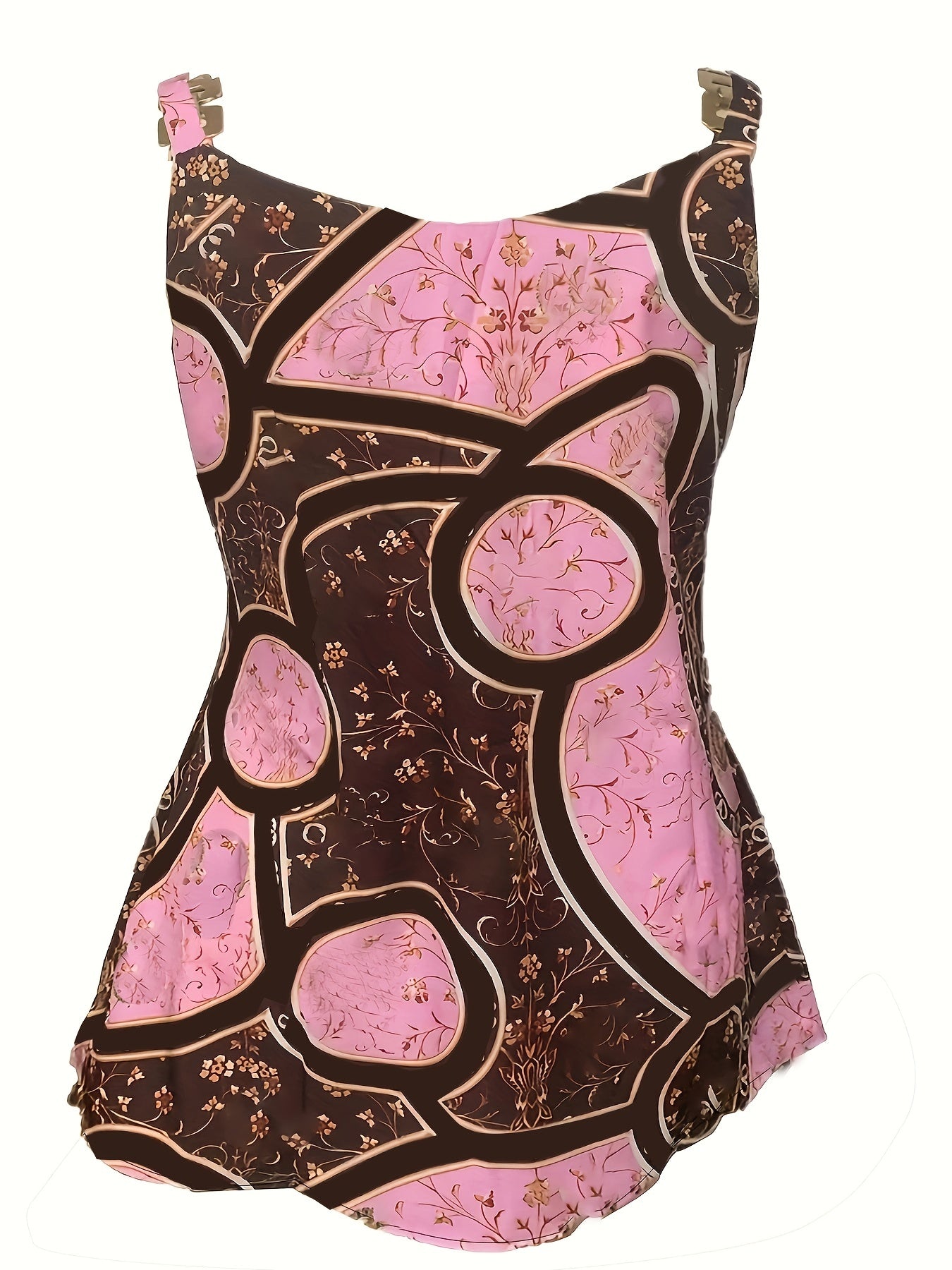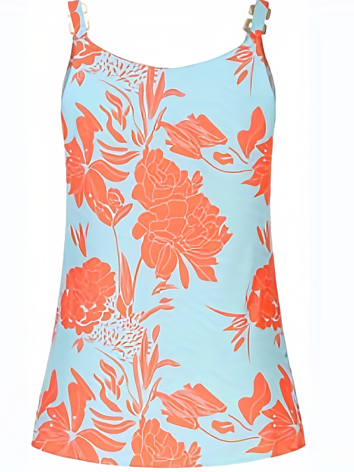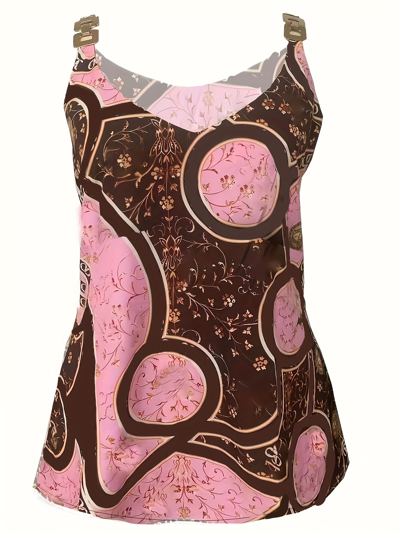 Vintage Floral Print Vest, Casual V Neck Sleeveless Chain Tank Tops