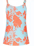 Sale Vintage Floral Print Vest, Casual V Neck Sleeveless Chain Tank Tops