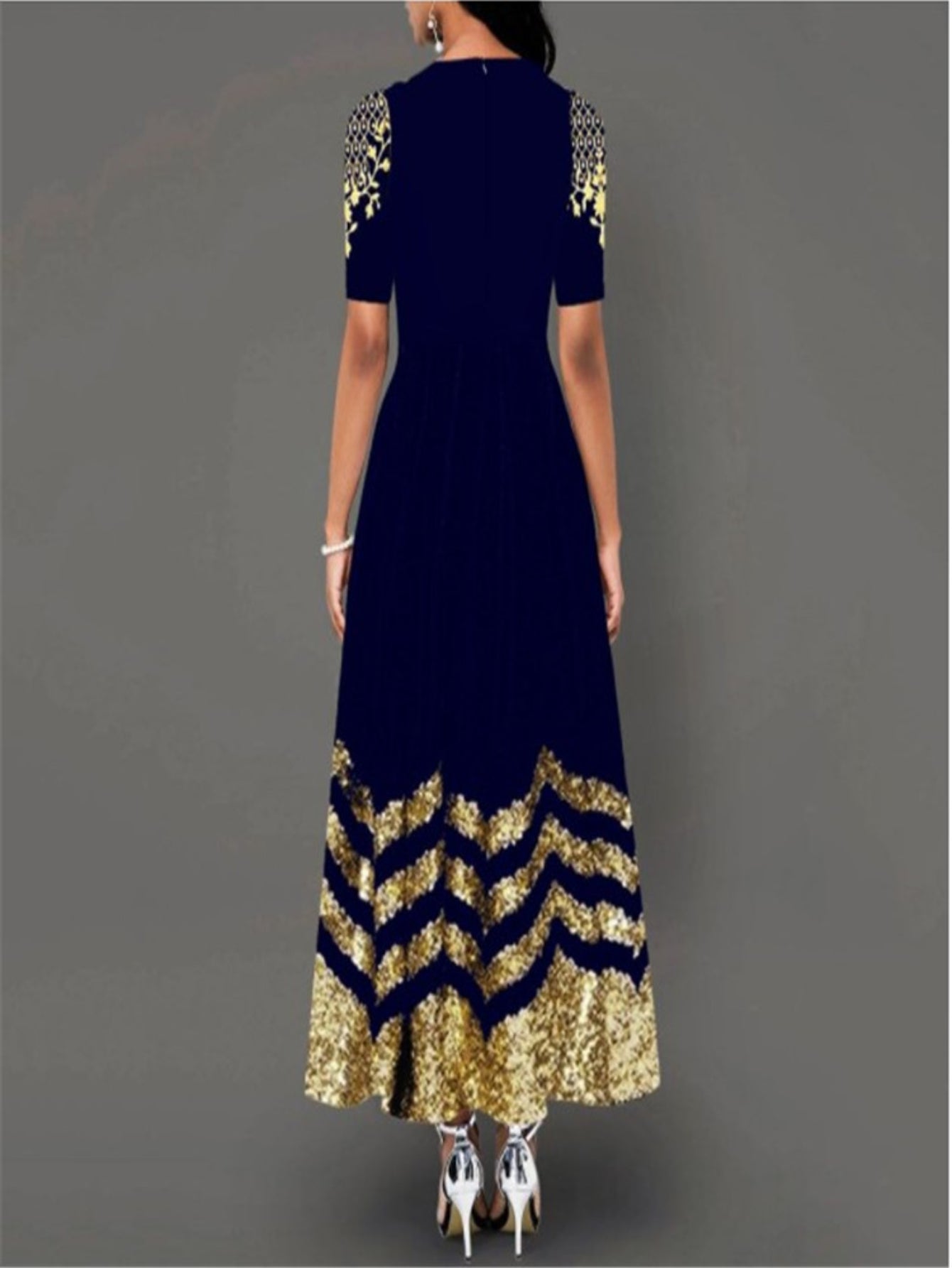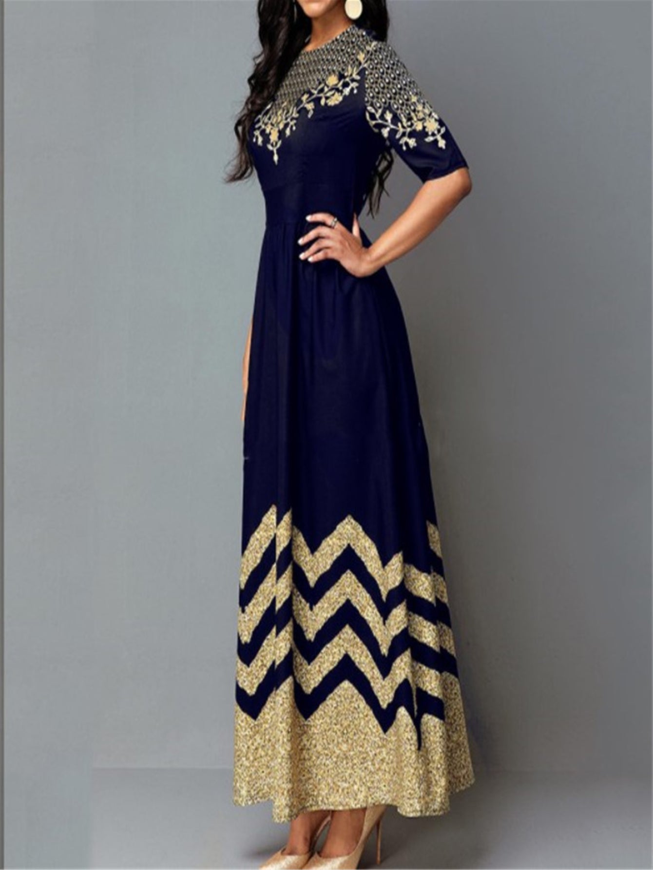 Sale Elegant Crew Neck Solid Color Slimming Mesh Panel Maxi Dress