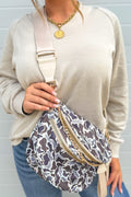 - Stay hands-free and effortlessly stylish with this bag.A rugged camouflage print that adds an edgy twist to any outfit.This compact yet spacious bag has dual zipper compartments.Finished with a gold chain adjustable strap to ensure a comfortable fit.