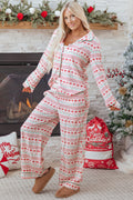 White Christmas Pattern Print Shirt Style Long 2pcs Pajama Set