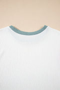 - This women’s tee is fashionable with corded knit fabric made.The contrast trim creates a colorblock design.The wide cap sleeve is romantic and cool.Pair well with denim shorts and sandals for chic summer look.