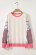 White Color Block Striped Patchwork Dolman Slit Sweatshirt